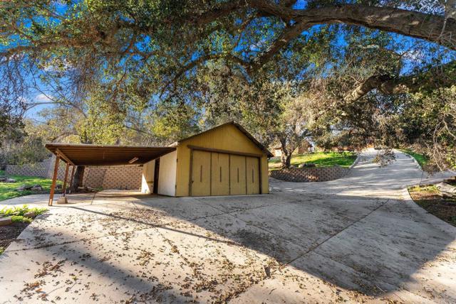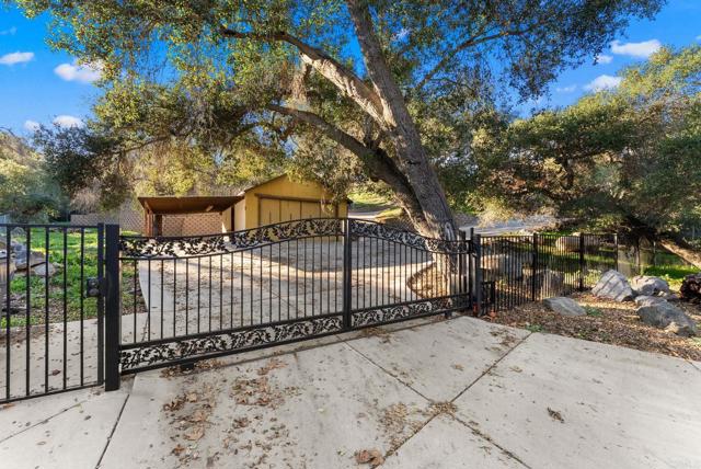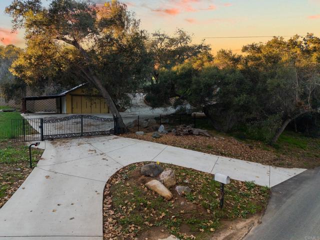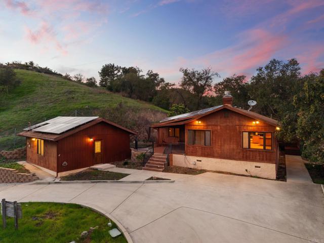 RARE OPPORTUNITY!! Perched above picturesque Live Oak Park, this classic Fallbrook property offers a rare blend of charm, versatility, and usable land. The main residence features 2 bedrooms and 2 bathrooms, anchored by an open-concept kitchen that flows seamlessly into a spacious living room with a fireplace. The kitchen has been tastefully updated with granite countertops and soft-close cabinetry, complemented by newer windows throughout. A generous rear deck off the main home flows seamlessly to a private flex space—currently configured as a bar and equipped with its own mini-split—offering a relaxed setting for entertaining, gatherings, or quiet evenings surrounded by nature. Set on nearly one full acre, the property includes a detached 1-bedroom, 1-bath guest unit complete with its own parking, private deck, and separate SDG&E meter—ideal for guests, extended family, or additional income. A detached two-car garage has been converted into flexible storage/office space with a full bathroom and mini-split system, offering additional functional versatility. At the lower portion of the property sits an older two-car garage or shed ready for revival, offering further potential. The remainder of the property is framed by mature, ancient oak trees that provide a serene and private backdrop.
