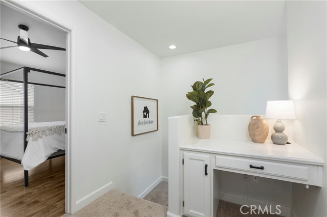 Welcome to this stunning, updated home ideally situated within the lovely Berkeley community and just steps away from the community's sparkling pool! Offering an exceptional blend of comfort and style, this home features two spacious master suites, each with its own en-suite bathroom, plus a convenient half bath on the main level. A built-in workstation upstairs provides the perfect space for working from home, adding to the home’s functionality. With approximately 1,302 square feet of beautifully updated living space, this home boasts fresh interior paint, new wood laminate flooring, new carpet, and stylish recessed lighting throughout. The inviting living room features a cozy fireplace, creating a warm and welcoming atmosphere, while the upgraded kitchen shines with brand-new stainless-steel appliances, tile countertops, and ample cabinet space. The designated walk-in pantry area provides additional storage, ensuring you have plenty of room for all your kitchen essentials. The main master suite is a luxurious retreat, complete with a dual sink vanity, privacy toilet, and a spacious walk-in closet. Both en-suite bathrooms have been tastefully renovated, featuring sliding glass door showers and newly installed contemporary lighting. Additional highlights include private laundry hookups in the attached two-car garage with direct access, a new dishwasher and microwave, and abundant storage throughout. Enjoy serene views of the community and pool while being centrally located to everything Brea has to offer, including the Brea Mall, Downtown Brea, shopping, dining, and entertainment. Don’t miss this incredible opportunity to own a move-in-ready, newly upgraded home in a prime location! Schedule your private tour today!