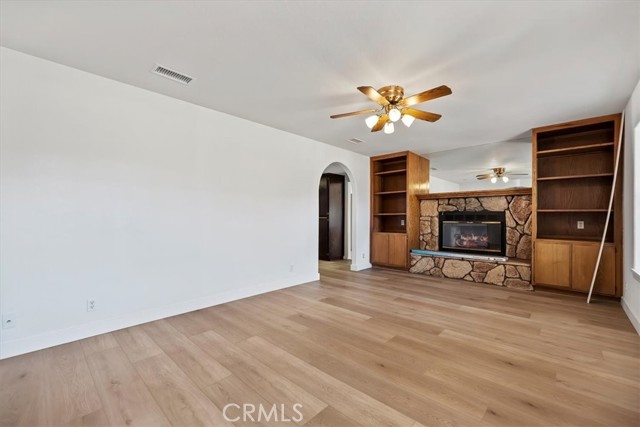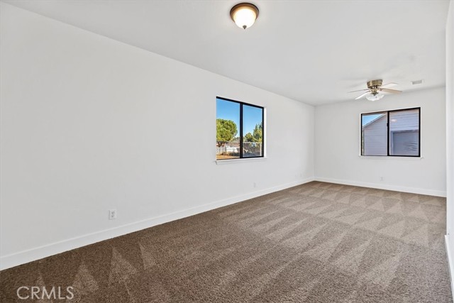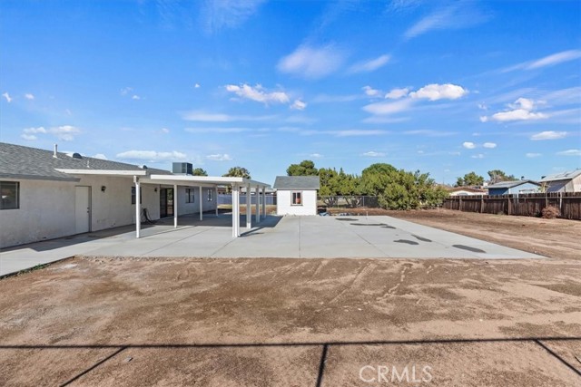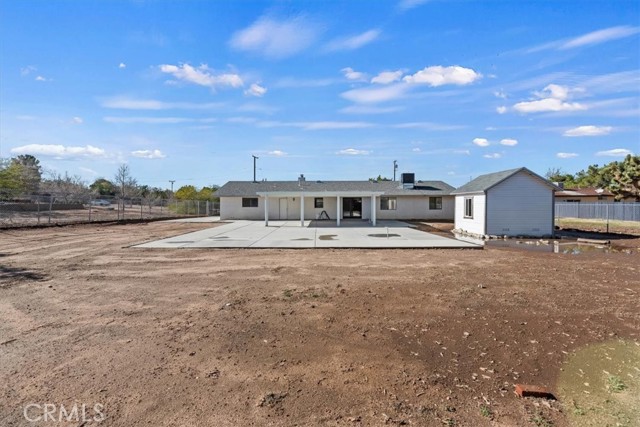 Don't miss out on this fantastic buy in the Mesa area of Hesperia. This single story plan has 3 beds, 2 baths, on a 19,000 ft flat lot. The house has all new paint and LVP flooring. The seller just installed a new AC system. The garage was converted into a huge family room, perfect for entertaining. The lot is fenced, with RV parking as well as a large covered concrete patio area. There is also a spacious shed for storage, and plenty of room to add a shop or garage.
