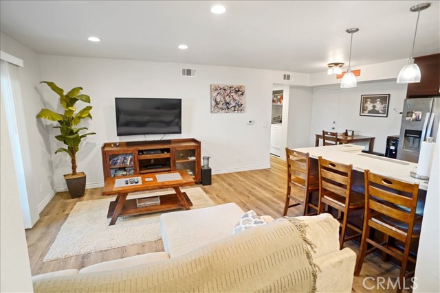 Beautiful 2 Bedrooms and 2 Baths with an Attached Garage in the Vista's Located in Newhall with Views! This upgraded property features one of the best locations in the complex, a large living room with recessed lighting, a sliding glass door to the patio that overlooks the green belt and great views, an open kitchen with a breakfast bar, upgraded light fixtures, custom dark cabinets, tile backsplash, stainless steel appliances, wood vinyl plank flooring, a dining area, lots of natural light, two large bedrooms with ceiling fans, walk-in closet in master bedroom, newer carpet in bedrooms, upgraded bathrooms with a walk-in glass tiled shower, an upgraded vanity with a custom sink, a second bathroom with a subway tiled shower and an upgraded vanity, a full-size washer and dryer, and a two-car attached garage. The community offers a pool, spa, greenbelt areas, picnic benches, and tennis courts. Close to shopping and a freeway. Located at the back of the complex, it is very quiet! This property is turn-key!