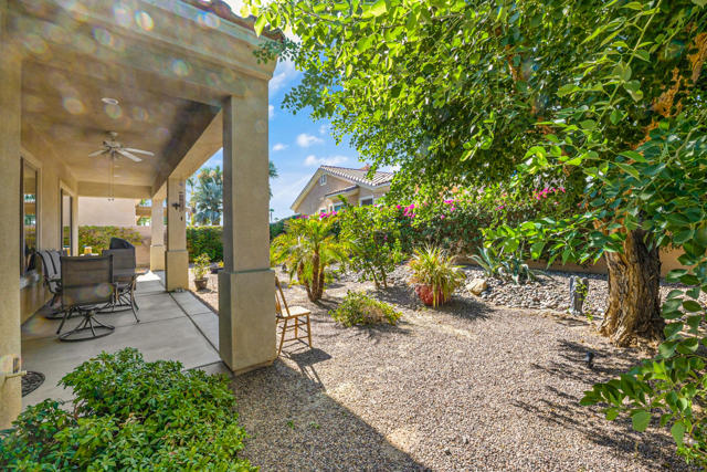 Located on a desirable corner lot within the prestigious 55+ active adult community of Sun City Shadow Hills, this beautifully appointed Avalino floor plan offers 2 bedrooms plus a den, 2 bathrooms, and 1,763 square feet (EST.) of thoughtfully designed living space. Manicured front landscaping and a welcoming entry set the tone for the comfort and quality found throughout the home. Inside, the bright, open layout is enhanced by tile flooring in the main living areas and brand-new plush carpeting in both bedrooms and the den, creating a perfect balance of style and comfort. The well-designed kitchen is ideal for everyday living and entertaining, featuring granite countertops, stainless steel appliances, a gas cooktop, double ovens, and generous cabinetry. The spacious primary suite serves as a private retreat, complete with a spa-inspired bathroom offering dual vanities, a step-in shower, and a relaxing soaking tub. The guest bedroom includes a walk-in closet and is thoughtfully positioned for privacy, making it ideal for visitors or versatile use. A dedicated indoor laundry room with upper cabinetry adds convenience, while the attached two-car garage provides ample storage. Step outside to the covered patio and enjoy the low-maintenance desert-landscaped backyard--perfect for morning coffee, evening gatherings, or simply unwinding in the desert breeze. As a resident of Sun City Shadow Hills, enjoy a vibrant resort-style lifestyle with access to championship golf courses, elegant clubhouses, fitness centers, pools and spas, tennis and pickleball courts, and a wide array of clubs and social activities designed to inspire connection and enjoyment.