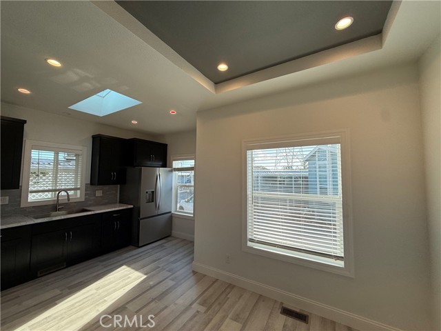 Brand new 2025 Skyline home. 2 bedrooms 2 bathrooms, approximately 648 sq/ft of living space. Kitchen equips with brand new stainless steel appliances: refrigerator, stove, chef range hood and farmhouse sink with goose neck faucet. Ceiling fans in bedrooms and living room. Water resistance vinyl plank flooring in common areas and carpet in bedrooms. Double pane windows throughout home. 9 feet ceiling. 7 years warranty. Low monthly space rent of $1,250.