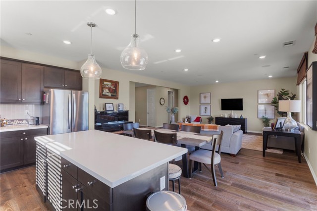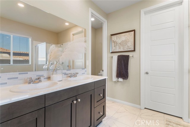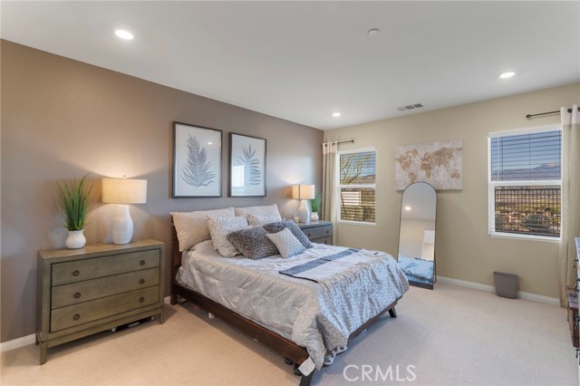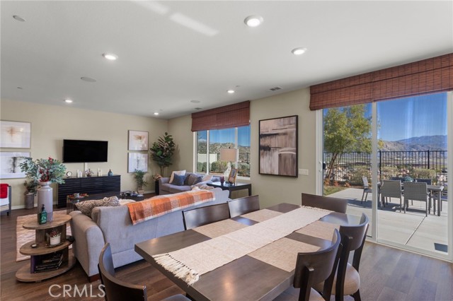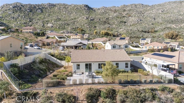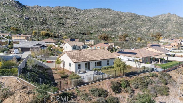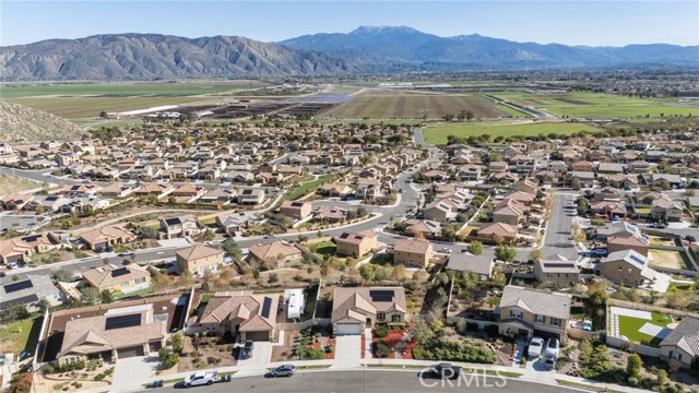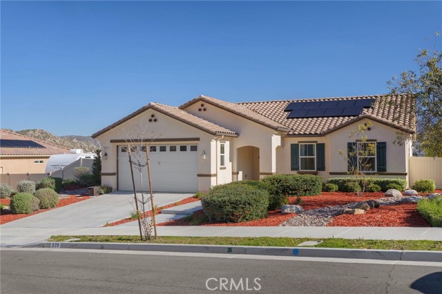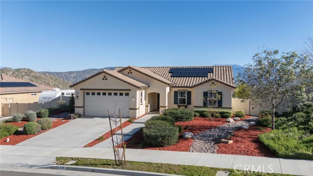 Step inside this former model home and immediately feel the open, airy layout designed to showcase some of the best panoramic views in all of San Jacinto. The entry opens into a bright open concept living room, dining area, and kitchen filled with natural light and incredible sunrise views. The kitchen features builder selected upgrades from its time as the model, including upgraded countertops, designer backsplash, and premium finishes that add both style and value. This space flows effortlessly for everyday living and entertaining. The primary suite offers beautiful views, a spacious walk in closet, dual vanities, and a separate water closet. Secondary bedrooms are thoughtfully located on the opposite side of the home, providing privacy and flexibility. Step outside to a finished backyard that extends the living space and takes full advantage of the large lot. One of the most valuable features of this home is the paid off solar system, resulting in a significantly reduced electricity bill, along with an EV charger, nine foot ceilings, surround sound, tankless water heater, and epoxy garage flooring. As a former model home with premium upgrades, breathtaking views, a finished backyard, and zero electric bill, this property stands out as a rare opportunity in San Jacinto.