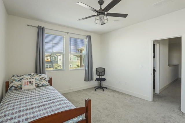 Welcome to this GORGEOUS EAST FACING, 4 BEDROOM, 3 BATHROOM, 2 CAR GARAGE, OWNED SOLAR, BUILT IN 2021, 2,563 sq ft of living space sitting on a massive 5,734 sq ft lot in the highly sought after TRACY HILLS. Upgrades include WOODEN VINYL FLOORS, PREMIUM CARPETS,& EPOXY FLOORING and STORAGE RACKS in the garage. It’s designed for comfortable living as the 1st floor comes with a bedroom and full bathroom. The great room combines the living room, kitchen and dining area creating an open and inviting area with plenty of natural light. The MODERN KITCHEN boasts QUARTZ COUNTERTOPS, SLEEK STAINLESS STEEL APPLIANCES, A LARGE ISLAND, CUSTOM BACKSPLASH, & WALK-IN PANTRY. The primary suite is a true sanctuary with a luxurious en suite bath featuring a LARGE SOAKING TUB, SEPARATE SHOWER, HIS AND HER SINK, AND A GENEROUS WALK-IN CLOSET. Enjoy the LARGE BACKYARD with FULLY GROWN FRUIT TREES and lots of green space to play & party with family & friends. Enjoy unparalleled PRIVACY as there is lots of open space in the NORTH/EAST CORNER & front of the home. It’s walking distance to TOP RATED CORRAL HOLLOW ELEMENTARY SCHOOL. Amenities include a CLUBHOUSE, & SWIMMING POOL perfect for summer. You’ll have EASY ACCESS TO I-580 & ACE train station. Don't miss the chance to make this your dream home!!!