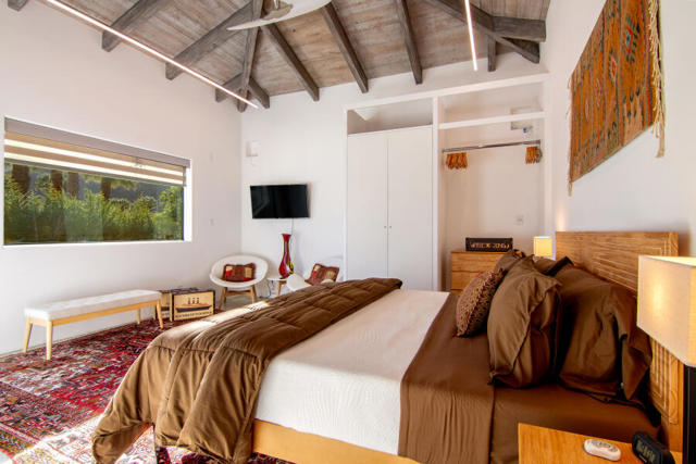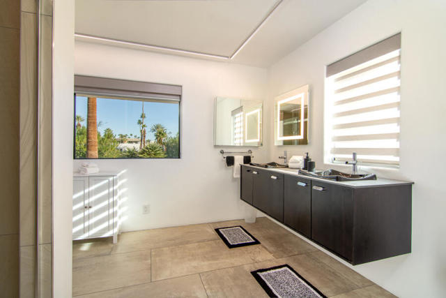 Welcome to a rare Old Las Palmas offering--currently the lowest-priced home among surrounding $7M+ estates. Just one block from downtown Palm Springs' renowned restaurants, shops, and entertainment, this historic neighborhood is celebrated for its welcoming community, neighborhood socials, and morning dog/people strolls.Privately gated, the property opens to a serene desert oasis featuring mature landscaping complemented by newer low-maintenance desert additions. This beautifully renovated residence blends old-world charm with modern sophistication and offers exceptional versatility ideal as a short-term rental, pied-a-terre, condo alternative, or legally expandable home.Enter directly into the living room, highlighted by soaring ceilings with exposed wood beams, modern lighting, and a cozy fireplace. The adjacent kitchen and dining area, visible through a classic serving window, overlook the saltwater pool, spa, and outdoor kitchen--creating seamless indoor-outdoor living perfect for entertaining.The home features two-bedroom suites plus a third bedroom currently used as an office. The elevated primary suite occupies the second level, offering breathtaking San Jacinto Mountain views, dramatic beamed ceilings, and private stair access to the backyard and pool. A guest suite is located on the main level, along with the third bedroom/office and powder room. A fourth bath serves the pool area and includes generous storage within a detached structure--offering potential for an ADU with city permits.Originally built in 1946 and extensively remodeled in 1993-1994, additional highlights include LED lighting throughout, custom cabinetry and countertops, wine cooler, newer sprinkler system, and a carport that could be enclosed to create a garage.A rare chance to own a thoughtfully updated desert retreat in one of Palm Springs' most prestigious neighborhoods.