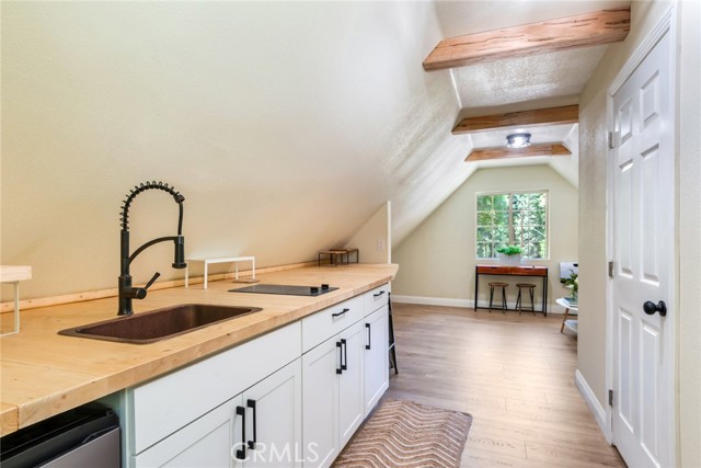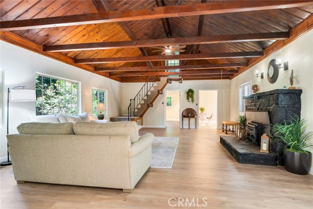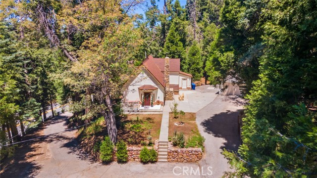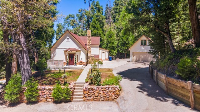 Discover the charm of this exquisite cottage on 1.15 acre parcel, nestled in the highly sought-after Crest Estates, just a stone's throw from the picturesque Lake Arrowhead Village and the shimmering lake. Set on over an acre of lush, tree-filled land, this property provides a serene sanctuary with the utmost privacy. The tree views from the windows is fantastic and like living in the trees and you have an actual yard for enjoying the scenery. The cottage has been lovingly remodeled to blend modern comforts with rustic elegance, featuring a spacious main house that boasts 3 bedrooms and 2.5 beautifully appointed bathrooms. Uncommon for the area, this property offers generous parking options, ensuring convenience for you and your guests. There is also addition parking located towards the bottom of the driveway. Adding to its allure is a detached 2-car garage, complete with an enchanting studio above. This charming space includes a delightful kitchenette that includes kitchen sink, 2 burner convection stovetop and a small dishwasher, making it perfect for guests or as a creative retreat. Don’t miss the opportunity to call this captivating cottage your home!