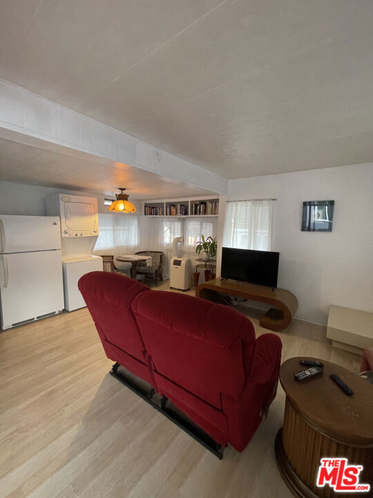 Charming single-level manufactured home located in one of Culver City's most convenient and desirable communities. This one-bedroom, one-bath residence offers a functional, light-filled layout with wood-style flooring throughout the main living areas. The living room features natural light and access to an enclosed or screened porch, providing flexible additional living space. The kitchen offers ample cabinetry, gas range, refrigerator, microwave, and an in-unit stacked washer and dryer. The bedroom includes built-in storage and a window air conditioning unit. The bathroom features tiled finishes, vanity storage, and a clean, well-maintained layout. The exterior showcases a classic facade with window awnings and a small front sitting area. Fabulous location close to Fox Hills Westfield Mall, shopping, restaurants, and the Culver City Transit Center hub. Trader Joe's, Whole Foods, Sprouts, dog park, hiking trails, and great schools are all within approximately one mile. The resident community center is ideal for gatherings, meetings, or relaxing and offers WiFi along with several newer washers and dryers.Park space rent is approximately $440 per month. This property is income-restricted, and all applicants must meet Department of Housing income requirements. Buyer to verify space rent, park rules, and all community guidelines. Broker and agent do not guarantee the accuracy of square footage, lot size, or other information concerning the condition or features of the property provided by the seller or obtained from public records or other sources. Buyer is advised to independently verify the accuracy of all information through personal inspection and with appropriate professionals. Property may have video or surveillance devices. Seller is open to exploring seller financing options, subject to terms.