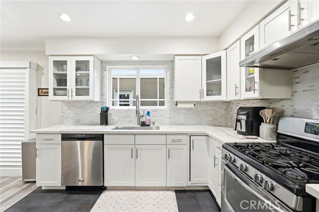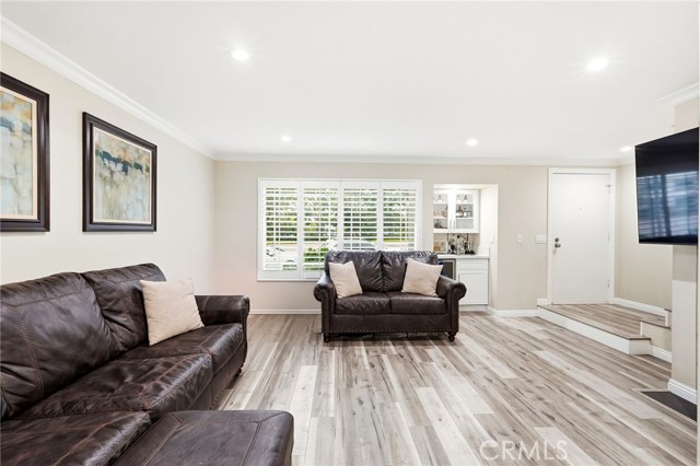 Welcome to this beautifully renovated, move-in ready 2 bedroom, 2.5 bath townhome in the highly desirable Devonshire Village. Expertly renovated throughout, this home blends modern design with functional living. The light-filled living room features wide windows with custom wood shutters, recessed lighting, upgraded gray laminate flooring, wet bar, and a fireplace, flowing seamlessly into the dining area perfect for entertaining. The spacious kitchen boasts quartz countertops, a modern backsplash, glass-front cabinetry, and stainless steel appliances, ideal for cooking and gatherings. Upstairs, enjoy two spacious primary suites, each with generous walk-in closets. The primary suite showcases a fully renovated bathroom with a floating his-and-hers sink, a filtered soft water shower with tub, and marble tile. The second suite offers its own private bathroom with a walk-in shower and ample closet space. A guest half bath is conveniently located on the main level. In-unit laundry, a direct-access two-car garage, and a private patio with TV's hookups perfect for entertaining, morning coffee, outdoor dining, or relaxing evenings. Resort-style amenities including two sparkling pools, a spa, and beautifully landscaped grounds. Perfectly located near CSUN, shopping, dining, freeway access, and the highly regarded Granada Hills Charter High School, this exceptional townhome combines modern upgrades, comfort, and an unbeatable community lifestyle. Priced to sale! A true turnkey opportunity, don’t miss it!