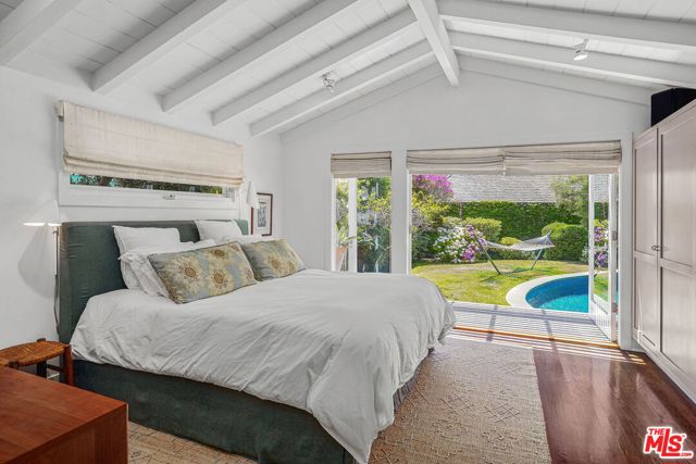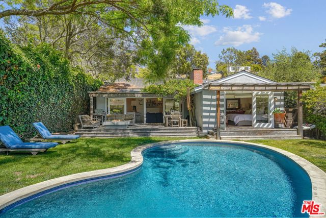 Thoughtfully updated beach bungalow with pool, nestled on a flat, private lot along a quiet cul-de-sac in coveted Santa Monica Canyon. With sun-drenched interiors and seamless indoor-outdoor flow, this 3-bedroom, 2-bath home delivers relaxed coastal living with an elevated edge. Quality finishes and a smart layout maximize comfort and style. The open-concept layout features vaulted ceilings and effortless indoor-outdoor flow. The living space includes a wood-burning fireplace, a cozy den with built-in desk, and a chef's kitchen with Viking appliances and breakfast bar all oriented toward a lush backyard retreat. French doors off the dining area and primary suite open to a private outdoor oasis with pool, fire pit, and multiple areas to lounge or dine alfresco. A generous two-car garage offers excellent bonus space potential, perfect as a gym, studio, or functional garage. Located just minutes from Montana Avenue, Palisades Village, Will Rogers Beach, and top-rated Canyon Elementary, this is a rare blend of quality, privacy, and location in one of the Westside's most beloved neighborhoods. Tenant Occupied-DO NOT DISTURB