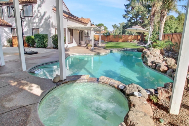 Enjoy exceptional living in this stunning Spinnaker Ridge home, ideally situated on a nearly ¼-acre lot designed for relaxation & entertaining. Beautiful entry door welcomes you into a thoughtfully designed interior featuring elegant formal living & dining rooms, plus a spacious family room w/ cozy fireplace. Well-appointed kitchen includes a double oven, trash compactor, Corian countertops, & high-end refrigerator—perfect for everyday living & hosting. Step outside to a backyard oasis w/ large free-form pool, elevated spa & rock waterfall. Architectural charm is showcased through w/ arched & bay windows and vaulted ceilings, creating a bright & inviting atmosphere. Stylish décor includes tasteful paint, plantation shutters, wood flooring, custom ceiling fans/light fixtures & updated lighting. Generous primary suite & 3 additional spacious bedrooms. Leased electric solar panels w/ battery backup provide peace of mind & cost savings. Expansive yard offers two covered patio areas, a side yard play area w/ play structure, planter boxes, mature landscaping w/ palm trees, newer fencing & more. Large boat/RV parking area includes a shed & shade structure. Laundry room features extra cabinetry & sink. Three-car garage w/ two offices built into the single-car side & additional cabinetry.