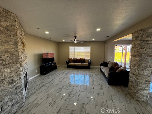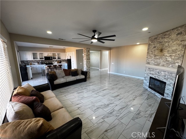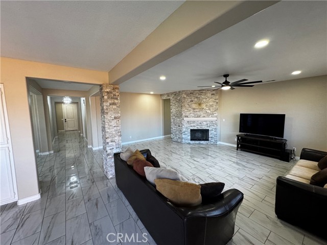 Welcome to this stunning, move-in-ready one-story home offering approximately 2,300 square feet of living space on a generous 7,000 sq ft lot. Designed for comfort and style, this home features 4 spacious bedrooms and 3 full bathrooms with an open and inviting floor plan ideal for both everyday living and entertaining. The beautifully updated kitchen opens seamlessly to the living and dining areas and includes a new stainless steel stove, new dishwasher and new microwave, elegant finishes, and abundant natural light. The home has been freshly painted throughout, with new carpet in the primary bedroom and elegant tile flooring in the living room dining room and kitchen. The master bedroom offers a private retreat with double sinks, a walk-in closet, and a separate tub and shower. Additional highlights include indoor laundry, a large 3-car tandem garage, and beautiful chandeliers that add a touch of elegance to the dining area and hallway. Located in a family-friendly neighborhood near excellent schools, shopping centers, and the mall, this charming home combines space, modern features, and an exceptional location truly a must-see.