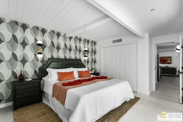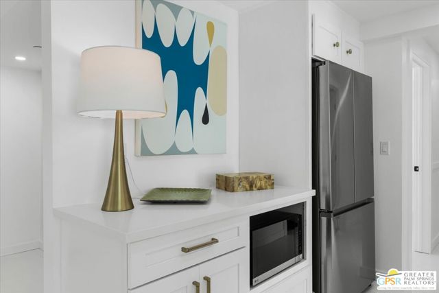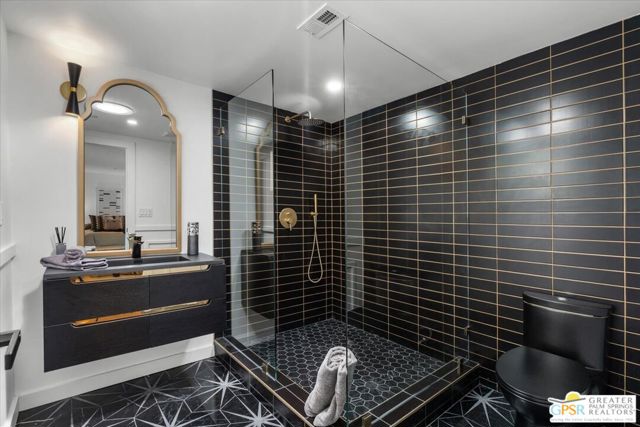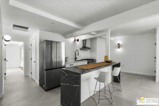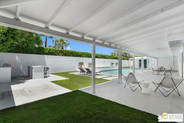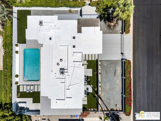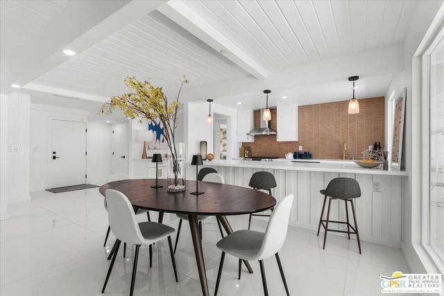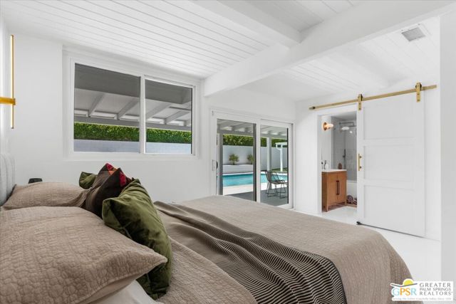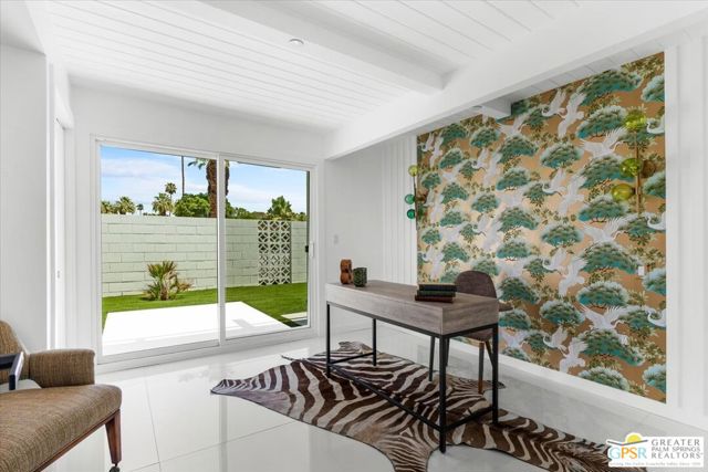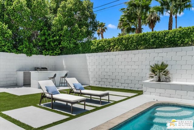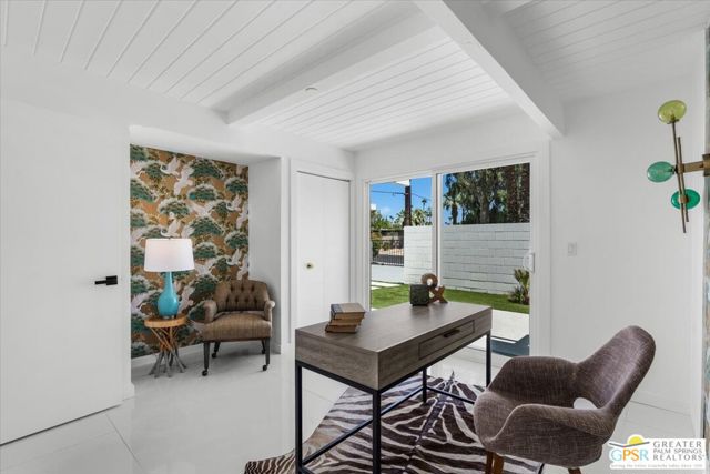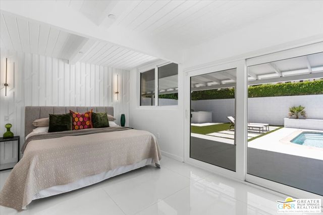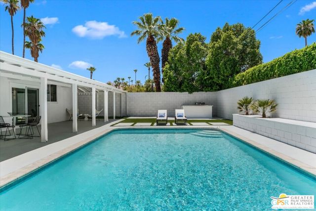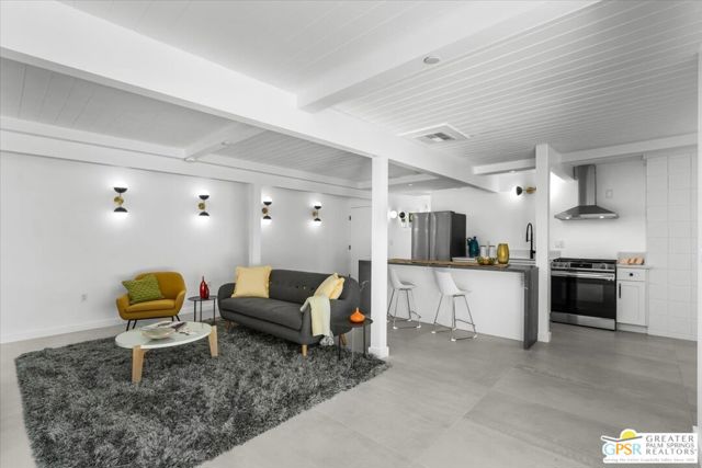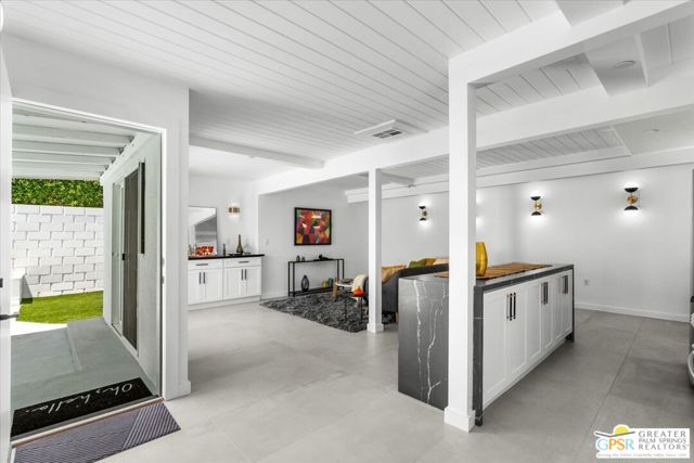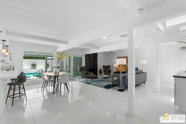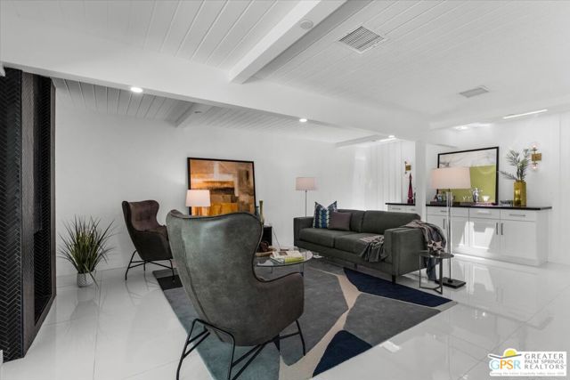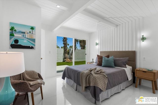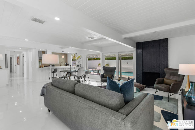 Located in the highly desirable neighborhood of Little Beverly Hills in South Palm Springs, this beautiful mid-century, Alexander-built home blends classic desert architecture with sophisticated modern updates. Completely redesigned, this home and separate casita feature 5 stylish bedrooms, 4 remodeled bathrooms, and contemporary tile flooring throughout the property. The main house hosts 4 bedrooms, 3 bathrooms, an open concept kitchen with stainless steel appliances, and a living/dining area compete with a beautifully tiled fireplace. A large glass sliding door and windows offer views from the living room and kitchen to the resort-style backyard complete with sparkling pool, built-in grill, and views of the San Jacinto Mountains. Accessed off the pool area or via a walkway on the north side of the property, the attached casita offers its own bedroom, bathroom, and its own open concept kitchen with stainless steel appliances. The casita also offers a spacious living room with views to the pool and backyard living area via a glass sliding door. With an abundance of space and a flexible layout, this spacious home is ideal for entertaining, hosting guests, or perhaps creating a separate living area for an aging parent or relative. And Little Beverly Hills is currently under the 20% cap on short-term rental permits, so this home could possibly be used as an income generating short-term rental property. Other highlights of the property include dual pane windows throughout the home, 2 tankless hot water heaters, updated electrical panels, updated water lines, sewer cleanouts on the back of the house (not always found on homes of this vintage), a gated driveway, and a whole house fire suppression system. With so many wonderful features and updates, this home is not to be missed. Schedule your private showing today!