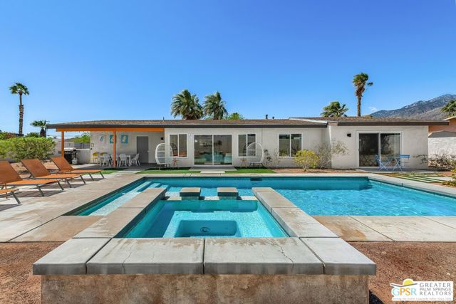 Set in the Desert Park Estates neighborhood, this updated Palm Springs home offers a seamless blend of comfort, function, and timeless indoor-outdoor living. Natural light fills the interior, where vaulted ceilings and tile flooring create an open, easy flow through the living, dining, and kitchen areas. A wall of double-pane sliders leads to the private backyard retreat, complete with pool, spa, gas fire pit and covered patio, all set against a backdrop of dramatic mountain views. Four bedrooms and two bathrooms include a spacious primary suite with dual vanities and direct access to the yard. Owned solar panels support energy efficiency, while mature desert landscaping with pops of color and texture enhances curb appeal and creates inviting spaces to relax or entertain. Tailored for easy living and designed to make the most of the Palm Springs lifestyle, this home is ready to welcome you. Schedule your private showing today!