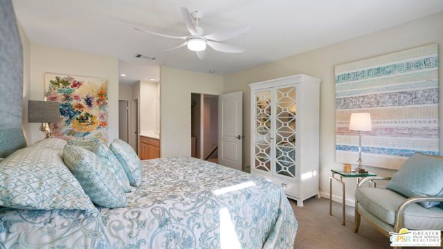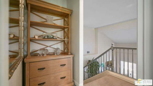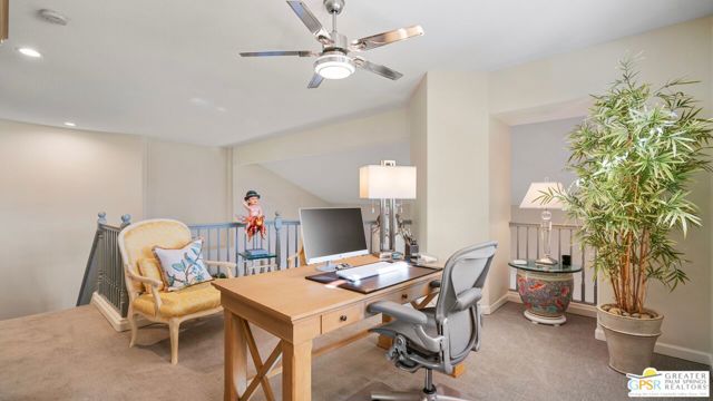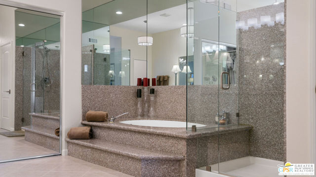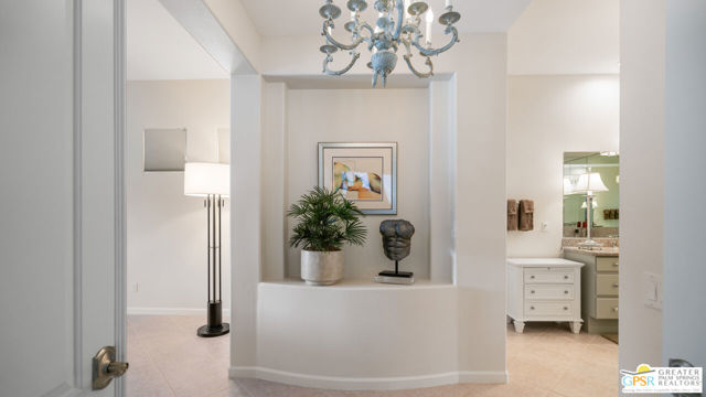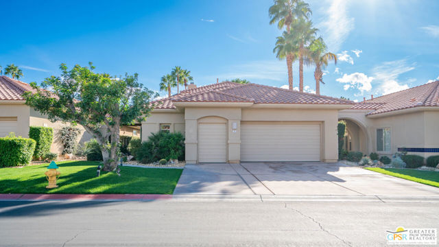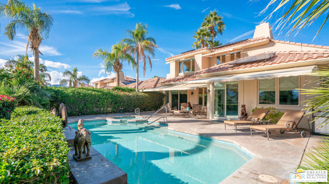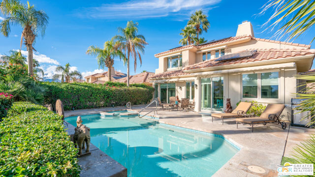 72 Kavenish. Located within Rancho Mirage Country Club, this rare four-bedroom residence offers a balanced combination of space, thoughtful updates, and modern systems within a meticulously maintained gated community. The home has been updated with a focus on efficiency and long-term comfort. A fully owned 47-panel Hyundai solar array, producing approximately 14.1 kW, supports lower energy costs, while two American Standard HVAC systems provide reliable climate control. Pella windows and doors enhance natural light and overall energy performance. The garage is air-conditioned via a Mitsubishi split system, adding flexibility for temperature-sensitive use, storage, or workspace needs. Interior spaces are clean and functional, featuring updated lighting and fixtures, refreshed railings, vaulted ceilings, and a redesigned fireplace in the main living area. The den includes a surround sound system, and the kitchen cabinetry has been professionally resurfaced, offering a refreshed, modern look. The home is hardwired for a security system, allowing owner-selected monitoring. Outdoor features include a newly resurfaced pool supported by a Pentair high-efficiency smart pool pump, designed for dependable, low-maintenance operation. Power-operated retractable awnings provide added sun control and usability of the outdoor living areas. Additional improvements include a point-of-use reverse osmosis system, full-house water conditioning, a LiftMaster garage system, a renovated downstairs bathroom, and new carpeting on the staircase. Located within an established country club community, the property offers controlled access, maintained grounds, and proximity to golf and club amenities, supported by a $950 monthly HOA. This home presents a well-rounded opportunity for buyers seeking a four-bedroom residence with modern systems and thoughtful upgrades in a private, resort-style setting. Easy to show.