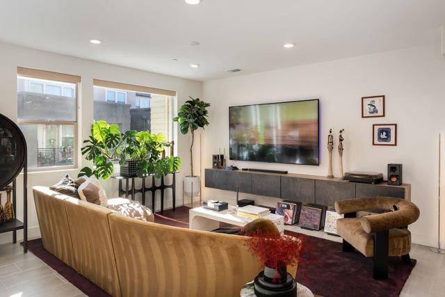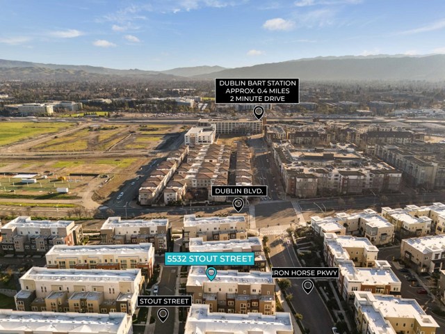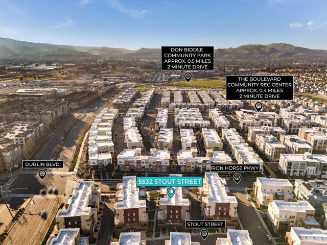 Stunning townhouse-style condo at 5532 Stout St. offering 2,118 sq ft, 3 bedrooms + office, and 3 full bathrooms. This highly upgraded SMART home shows like NEW, filled with natural light and premium finishes throughout. Features include a built-in entertainment wall, TV wall mounts, floating shelving, custom motorized roller shades, WiFi-connected oven, and reverse osmosis drinking water system. The primary suite boasts a custom closet system and LED vanity mirror. Secondary bedrooms offer upgraded storage and shelving. Laundry includes built-in cabinetry, shelving, and WiFi-connected washer and dryer. The finished garage features polished concrete floors, 9000-lumen LED lighting, smart garage door opener, and EV Level 2 charger connection (charger not included). Additional highlights include a whole-home salt-based water filtration and softening system, Ring security system, and mesh POE WiFi system with ceiling-mounted units on each floor. Patio includes a roller screen door. Enjoy resort-style amenities: Don Biddle Community Park, recreation center, heated pool and spa, fitness center, clubhouse, dog park, and playground. Located within top-rated Dublin schools, just a short walk to BART, shopping, dining, with easy access to I-580/I-680 and nearby parks and trails.