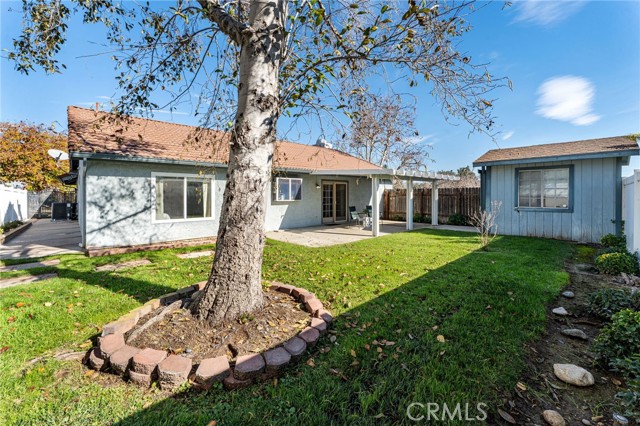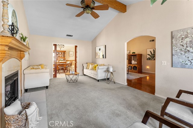 Perfect First Home or Ideal Single-Level Downsize Opportunity!! This beautifully updated single-story home is an excellent choice for first-time buyers or those looking to downsize without sacrificing space or comfort. A gated front yard with grass and attractive landscaping offers privacy and a welcoming place to enjoy outdoor living right at the entry. Inside, you’re greeted by a step-down den/family room, creating a warm and versatile space for relaxing, entertaining, or hobbies. The spacious living room features a cozy fireplace and bay window, an inviting spot to unwind with a good book. A separate dining room is perfect for gatherings, while the breakfast nook provides a casual everyday dining option. The home has been thoughtfully updated with tile flooring, all new windows, new air conditioning, and a smart thermostat, making it truly move-in ready. The bright kitchen includes a charming garden window and opens to the backyard through a double-pane sliding glass door. The large primary suite offers a comfortable retreat with a walk-in closet with organizer and a private bath with dual sinks and a fiberglass panel with embossed bonsai tree soaking tub. A cozy second bedroom is perfect for guests, while the third bedroom with built-in shelving works beautifully as a home office or flex space. Enjoy easy outdoor living in the fully enclosed backyard with mostly vinyl fencing, covered alumawood patio, and included storage shed. The large garage features cabinets, overhead storage, a shop corner, and a new smart garage door opener ideal for storage or projects. Refrigerator, washer, and dryer are included for added convenience. With mountain views, close proximity to Red Hill Park, schools and shopping makes for easy single-level living, this home offers comfort, simplicity, and peace of mind whether you’re buying your first home or ready for a relaxed, stair-free lifestyle. Call now to schedule your own private tour. <