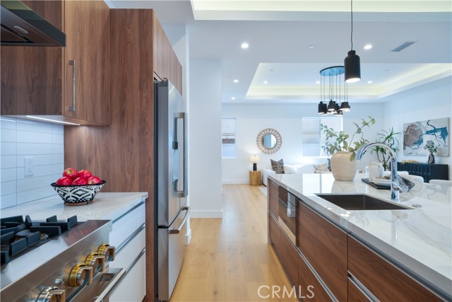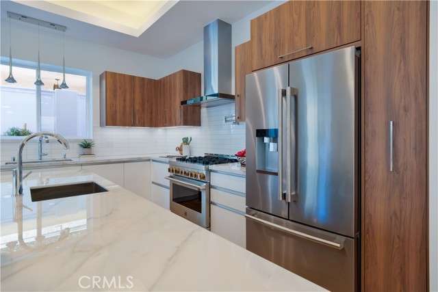 Step into modern luxury with this beautifully crafted 4-bed, 3.5-bath detached townhome, where thoughtful design and high-end finishes come together to create the perfect living space. Artfully designed by Alex Ioda, whose signature modern minimalism defines the home’s unique presence, and built by Ioda Construction Inc., this residence blends clean lines, warm textures, and purposeful functionality throughout. Wide-plank oak engineered hardwood flooring complements the custom-built cabinetry, durable porcelain kitchen countertops, and a striking waterfall island that serves as the home's central gathering point. High-end appliances, including a JennAir range, refrigerator, microwave drawer, and Bosch dishwasher, ensure a top-tier culinary experience, while under-cabinet lighting and a stylish dry bar add extra flair. The master suite is a true retreat, featuring a private balcony, a stunning walk-in closet, spa-like bathroom with double-glazed porcelain tiles, a standalone soaking tub, and a two-person shower. Custom built-in closets provide ample storage and imported solid Nordic Oak interior doors from Spain, complete with magnetic latches, add a sophisticated touch. Designed for convenience and modern performance, this home is equipped with a high-efficiency electric heat pump for heating and cooling, a hybrid water heater, and a central vacuum system. Seven Philadelphia Solar Panels and a SolarEdge Hybrid Inverter make it ready for energy-conscious living. Tech-savvy features include pre-wiring for surround sound, coaxial and ethernet connections throughout, and LED touch mirrors for a modern finish. The spacious walk-in laundry room with a sink, an electric vehicle charging outlet, and a central smart hub further enhance functionality. The home’s seamless indoor-outdoor flow makes it perfect for both relaxing and entertaining. Situated in the heart of North Redondo, you’re moments from top-rated schools, neighborhood parks, and the best of South Bay living. Photos are of Unit A, Unit B is unstaged. WHEN YOU BUY HERE, YOU’RE BUYING A LIFESTYLE.