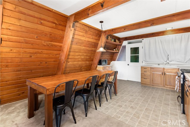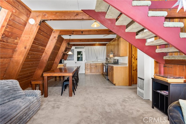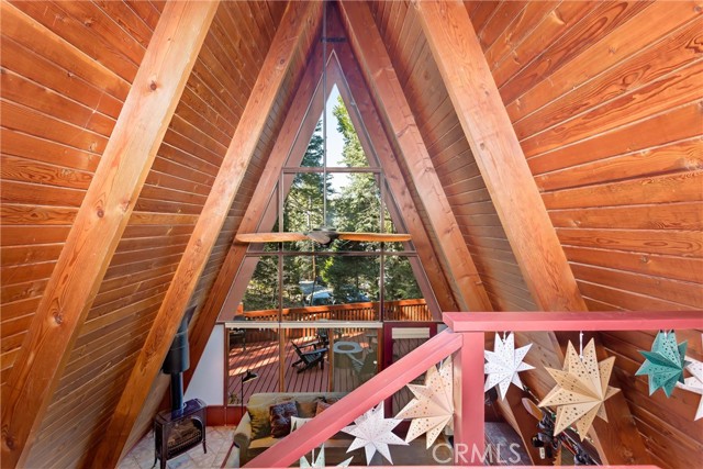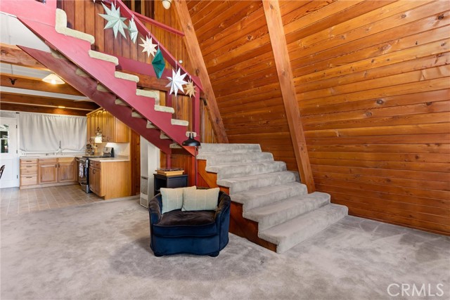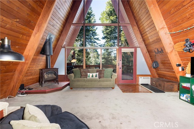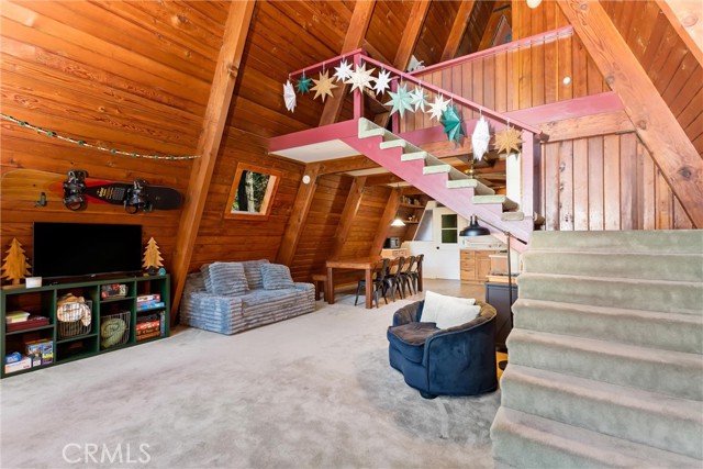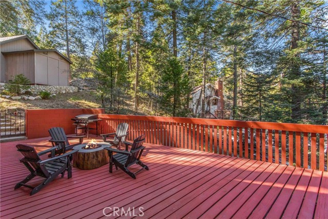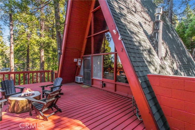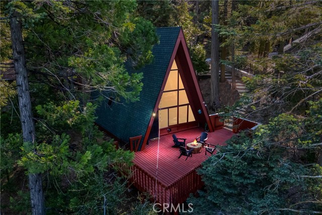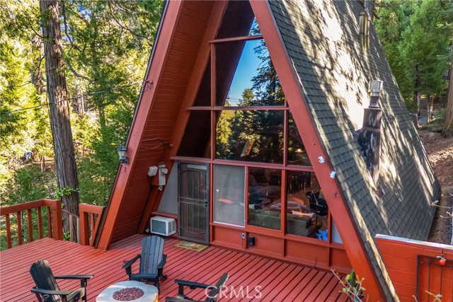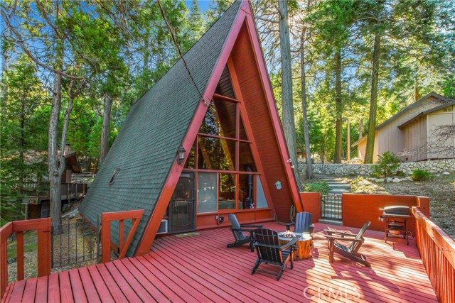 Live the mountain life in an iconic A-frame retreat! This A-frame style cabin is located in Crestline near Lake Gregory and features a distinctive roofline and open interior layout that highlights classic A-frame architecture. The home offers 1 bedroom and 1 bathroom and is fully furnished, including sleeping arrangements for up to nine. The kitchen and living areas are equipped with everyday essentials such as an air fryer, coffee maker, microwave, cookware, dishes, linens, blankets, and games. A newer washer and dryer are also included. Outdoor features include a large oversized deck, beautiful gas fire pit with chairs, and a new, large Blackstone BBQ. The deck provides space for outdoor dining and gathering. The property is set in a mountain environment with convenient access to Lake Gregory, outdoor recreation, and local amenities. The home is being sold fully furnished, offering a move-in ready option for full-time use or seasonal stays.