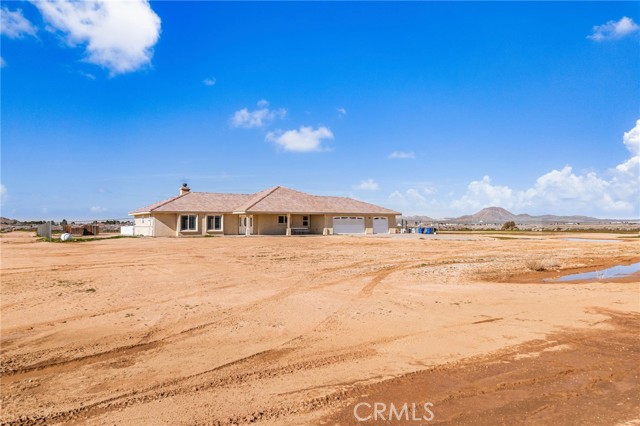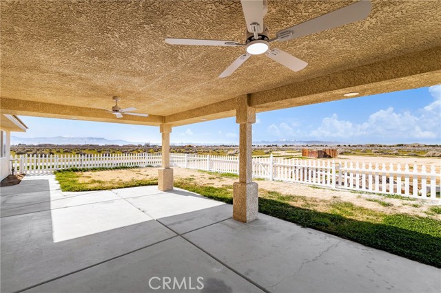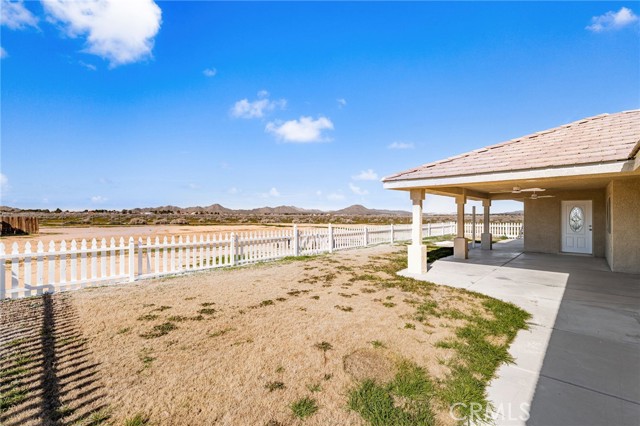 CUSTOM TURNKEY ONE STORY, MOUNTAIN VIEWS, LOW UTILITY COSTS, AND NO NEIGHBORS... A beautifully maintained single-story home that has true pride of ownership, offering endless privacy, and space. Located on a giant 38,895 sq ft lot. Featuring 4 bedrooms, 2.5 baths, 2,259 sq ft of true living space, and fresh interior and exterior paint. Have control over your utility bills with well water, propane gas, and septic, this property delivers lower monthly overhead, more control, and wide-open living. This move-in-ready home showcases a open concept floor plan with high ceilings, dual-pane windows, and a tasteful blend of tile and fresh carpet throughout. The light-filled living room opens to an entertainer-friendly layout, while the open kitchen features recessed lighting, abundant cabinetry, a large peninsula and center island that is equipped with stainless steel appliances, a walk-in pantry, and an adjoining dining area. The family room connects seamlessly to the kitchen and includes a wood-burning fireplace, direct patio access, and a nearby guest bath—ideal for hosting. All four bedrooms are well sized, with a large private primary suite offering an additional room off of the primary mountain views, a large walk-in closet, and a spa-style bath with dual sinks, soaking tub, glass-enclosed shower, and private commode. Additional highlights include a dedicated laundry room, covered patio with ceiling fans, white picket fence enclosure with lush grass, oversized concrete driveway, and a finished 3-car direct-access garage with ample off-street parking. Enjoy peaceful desert living with no neighbors, panoramic views, and room for all your vehicles, toys, or future plans—just minutes from shopping and dining. This is Apple Valley living at its best: clean, efficient, spacious, and truly turnkey.