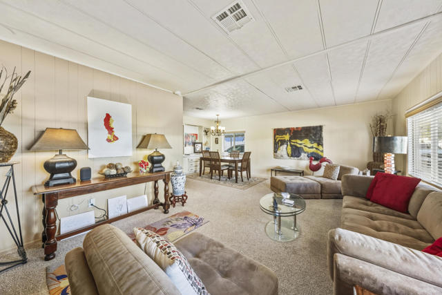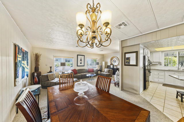 Welcome to this beautiful fully furnished 3 bed 2 bath manufactured home with a large primary and walk-in closet. The home is located in the beautiful Palm Springs View Estates which has 3 pools/spas, and a community meeting area. This home has been well taken care of with many upgrades such as newer windows and blinds, roof, earthquake bracing, updated baths and kitchen, and newer carpet in the living/dining areas. You'll find lots of extra storage around the home. Grab your piece of Palm Springs today.