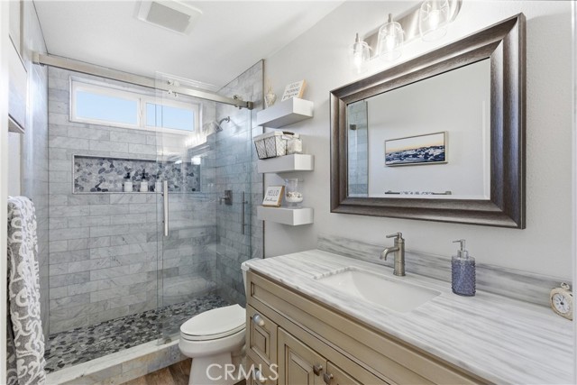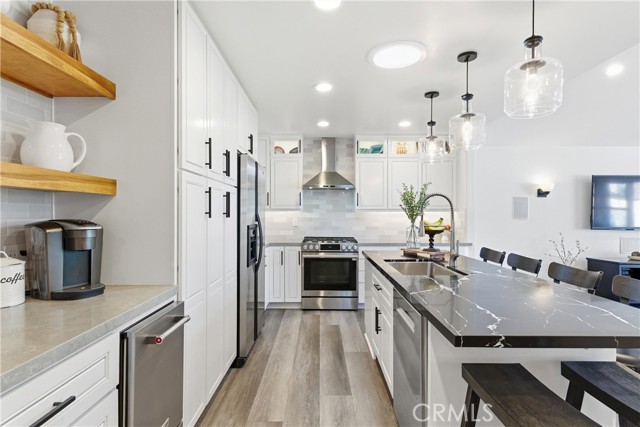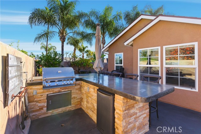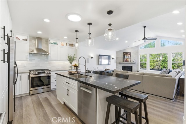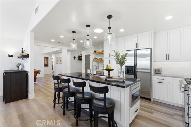 This beautifully updated single-story home offers 4 bedrooms, 2 bathrooms, and nearly 2,200 square feet of thoughtfully designed living space, combining modern upgrades with a highly functional layout. The heart of the home is the fully remodeled kitchen (November 2025), featuring quartz countertops, slow-close shaker-style cabinetry, and stainless steel appliances, including a gas range, dishwasher, microwave drawer, and ice maker. The kitchen opens seamlessly to a spacious living room, a permitted addition that creates an ideal setting for everyday living and entertaining. Stylish vinyl flooring runs throughout the home, complementing the oversized primary suite and generously sized secondary bedrooms, all expanded as part of a permitted addition. Both bathrooms have been tastefully updated with quartz countertops and custom tile showers, offering a clean, modern aesthetic. The home is equally impressive behind the scenes, featuring owned solar panels that fully offset energy usage with no true-up bill with SCE—even with an electric vehicle—while still allowing capacity for additional demand. A whole-house fan enhances comfort by efficiently drawing in cool coastal breezes during the morning and evening hours. The private backyard is a true entertainer’s retreat, complete with a custom BBQ bar, fire pit with built-in seating, and ample space for al fresco dining, lounging, or recreational enjoyment. A rare combination of style, efficiency, and seamless indoor-outdoor living, this turnkey residence offers a refined lifestyle in a beautifully upgraded setting. PLUS, this property is less than a mile from the beaches, boats, and summer concerts on Lake Mission Viejo, and it is zoned for the award-winning schools of Capistrano Unified.