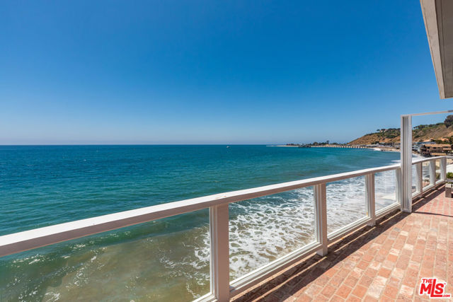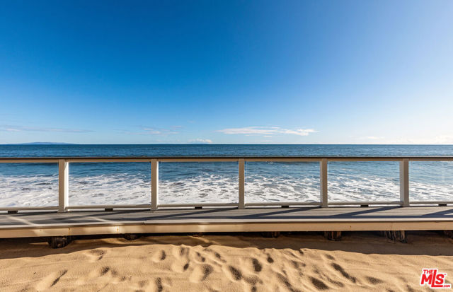 Experience the ultimate Malibu beach living with this stunning three bedroom, three-bathroom residence on the coveted sands of Carbon Beach - just steps from Nobu, Soho House, and the iconic Malibu Pier. Wake up to the sound of waves and unwind on your private beachfront deck, offering panoramic views of the Santa Monica coastline and the Pacific. The open-concept living room is bathed in natural light with soaring ceilings that flow seamlessly into a spacious kitchen featuring new stainless steel appliances. The primary suite offers a serene retreat with a generous en-suite bath, a second bedroom ensuite is great for guests while a convertible den serves as a flexible third bedroom or media lounge. An additional bonus office off the primary provides the perfect work-from-home setup. Set within a secure, gated oceanfront enclave, this rare offering includes a private two-car tandem garage and in-unit laundry. A true coastal gem, this exceptional condo captures the very essence of relaxed luxury in one of Malibu's most prestigious beachside settings.