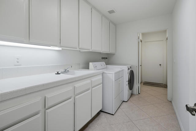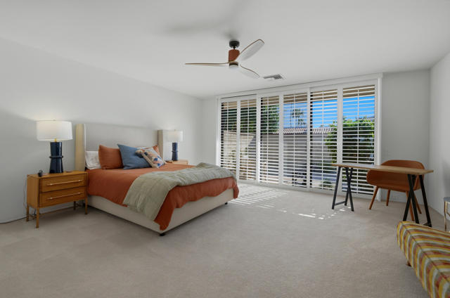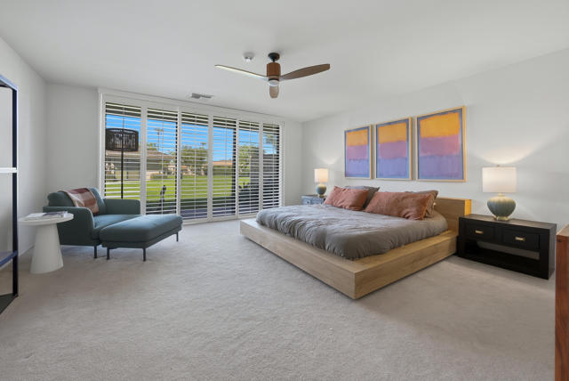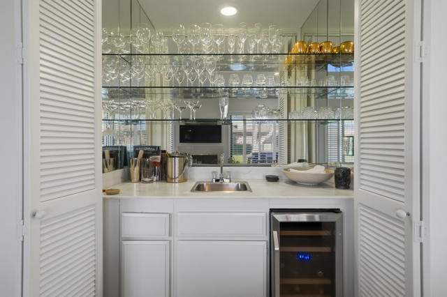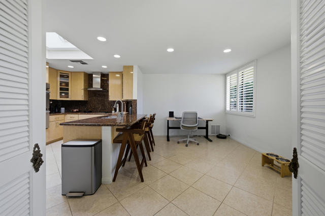 Highly desirable in The Springs and in pristine condition, this 3-bedroom, 3 bath home has been upgraded with porcelain tiles, marble fireplace, custom shutters throughout. Major recent upgrades include 27 Owned solar panels and 2 new HVAC systems. Other upgrades include kitchen custom cabinets with an Italian flare, granite countertops and stainless-steel electric appliances. Skylights strategically placed throughout the home bring in wonderful natural light as do the many floors to ceiling windows and sliding glass doors. Recessed lighting and tall ceilings also add to the spaciousness. All bathrooms have porcelain tiles and marble showers. Both ensuite bathrooms have marble rain showers. Front private patio has lush landscaping and mountain views. The wrap around lanai offers tranquil greenbelt and lake views. The community pool and spa, surrounded by privacy green hedges, is just steps away. In addition to the 2-car garage, there is a separate golf cart garage door. The Springs Country Club is known for its majestic views, beautiful landscaping, newly remodeled championship golf course, tennis club, pickleball, new clubhouse, fitness center, and 24/7 monitored/guard gated security. The Springs is where you belong!