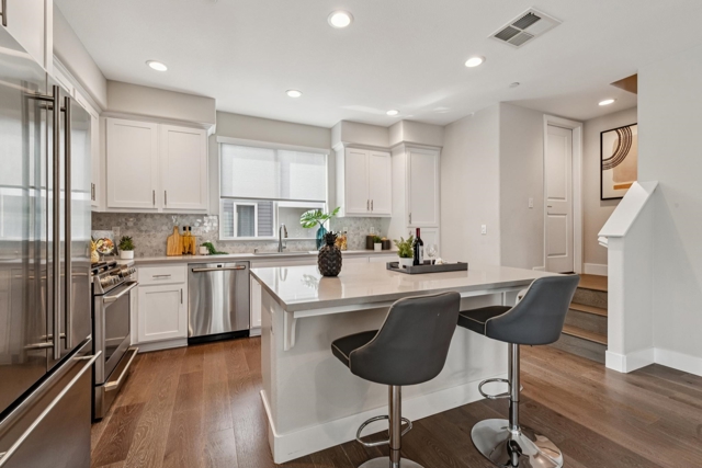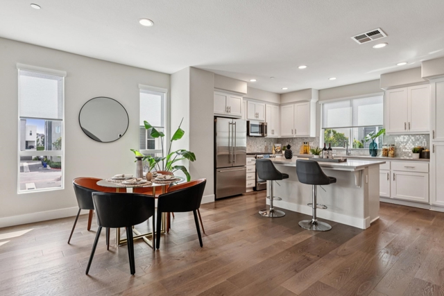 Modern 3BD/4BA end-unit townhome in Marina Bay’s desirable NOMA community. Built in 2018, this light-filled, multi-level home offers 1,739± sq ft of open-concept living with $75K in upgrades, including automated blinds, Café appliances, Monogram fridge, and a premium security system. Spacious living room flows into a sleek kitchen—perfect for entertaining. Enjoy a private rooftop deck with partial Bay views, ideal for outdoor dining or relaxing sunsets. The 2-car garage features epoxy floors and custom built-ins. Prime location near Bay Trail, parks, and Richmond Ferry, with easy access to Oakland, Berkeley, and San Francisco.