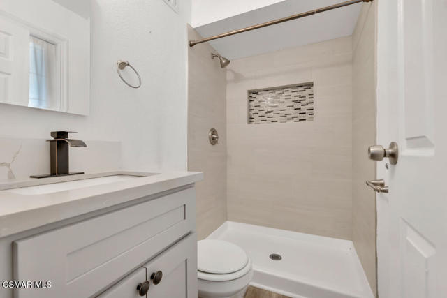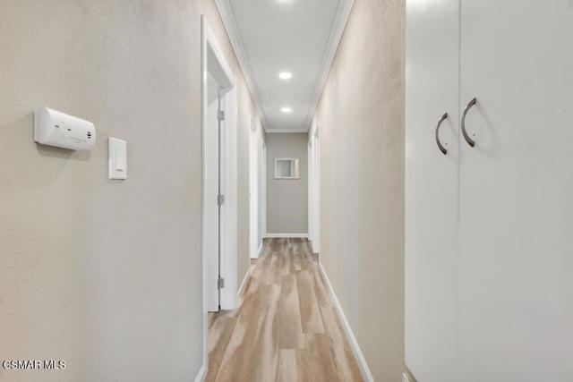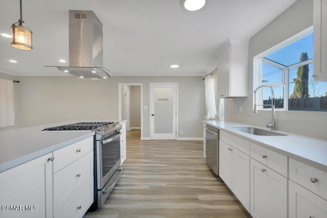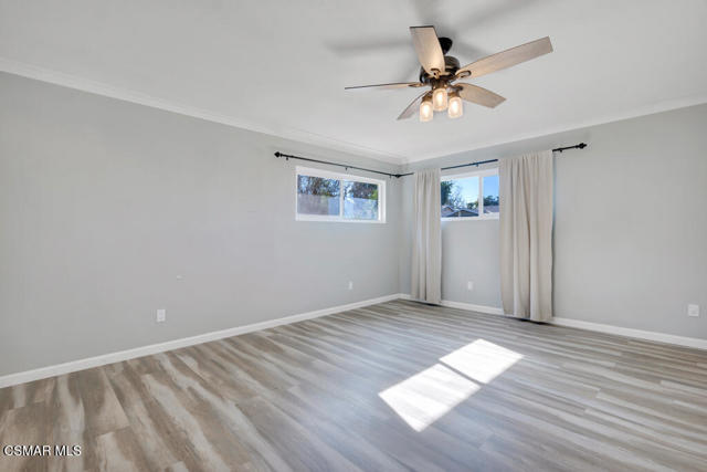 Set in the Jade Hills community, this single-story home offers 5 bedrooms (including 2 primary suites), 3 updated bathrooms, and approximately 2,069 sq. ft. of living space, with a thoughtful blend of modern updates and everyday comfort. The added second primary suite creates an excellent opportunity for multi-generational living, a private home office, or potential rental income. The home is light and bright, finished with wood-like flooring throughout, recessed lighting in the main living areas, crown molding, and updated baseboards, creating a clean, cohesive look that feels truly move-in ready. An open-concept layout connects the living, dining, and kitchen areas, making the space comfortable for daily living and easy for entertaining. The kitchen features quartz countertops and peninsula with breakfast bar seating, white soft-close cabinetry, a GE stainless steel 4-burner cooktop with grill and hood, LG dishwasher, farmhouse sink with garden window, recessed lighting, and a walk-in pantry with a frosted glass door and electrical outlets for small appliances. The primary bedrooms include updated en-suite bathrooms, while three additional secondary bedrooms offer flexibility for family, guests, or office use and are served by an updated hall bathroom. All bedrooms feature modern light fixtures, and dual-paned windows and sliding door throughout enhance comfort and efficiency. The converted garage functions as a fifth bedroom with its own private, updated en-suite bathroom, providing added flexibility without interrupting the home's overall flow. The living area opens through a sliding door to the backyard, featuring a patio made of pavers, grassy yard, and an included Tuff Shed for added storage. With its single-level design, open layout, and tasteful updates throughout, this Jade Hills home offers a comfortable, flexible living environment well suited to today's lifestyle.