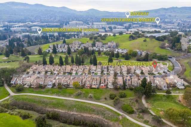 Welcome to 2190 Canyon Lakes Dr, a beautifully maintained detached home nestled within the highly desirable, gated Canyon Lakes Estates community in San Ramon. This light-filled residence offers a versatile and thoughtfully designed floor plan, ideal for multi-generational living, guests, or those seeking main-level convenience. The main level features a spacious primary bedroom suite along with a secondary bedroom and full bath, all with no interior steps, providing excellent accessibility and comfort. Vaulted ceilings and abundant natural light enhance the open living and dining areas, creating a warm and inviting atmosphere. The entire interior has been freshly painted, adding a clean, modern feel throughout the home. The generous eat-in kitchen offers ample cabinetry and seamless flow for everyday living and entertaining.Upstairs, an additional bedroom with a full bath and a large open loft provide flexible space for a home office, media room or bonus area. Step outside to a private, fenced rear patio with peaceful golf course and open-space views, overlooking the first green—an ideal setting for relaxing or entertaining. Additional highlights include an attached two-car garage, low HOA dues, and a vacant, move-in-ready