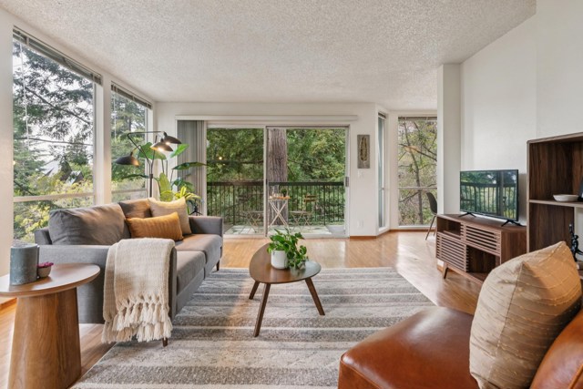 Rarely available corner unit condo situated amongst beautiful redwoods! Kitchen and bathroom remodeled in 2020 with new cabinets, tiled backsplash and quartz counter tops. Tranquil setting close (but not too close) to campus. Treetop and partial Bay view. Dedicated parking and storage in the secure garage. Private balcony. Great for anyone associated with Cal, downsizers or working professionals who want to be in North Berkeley. Close to BART, North Shattuck shops and eateries, parks and trails.