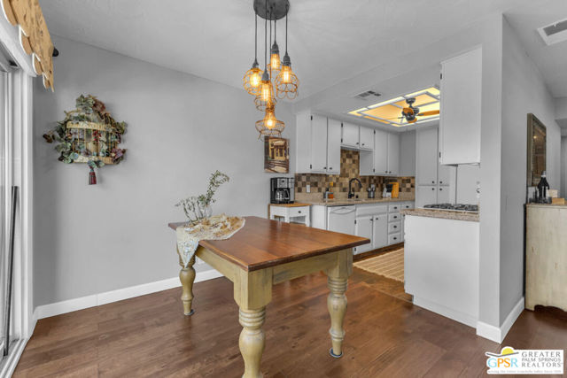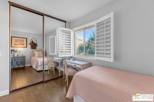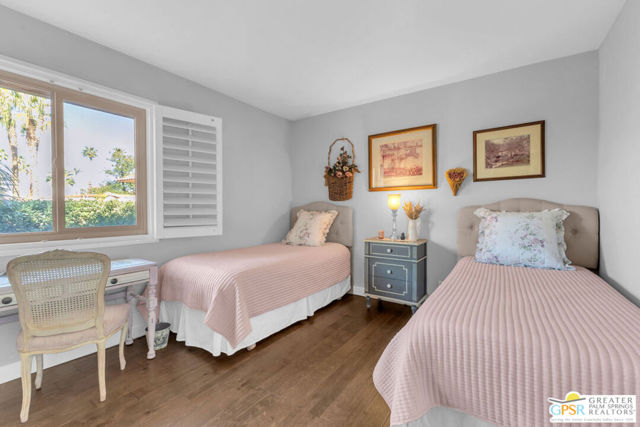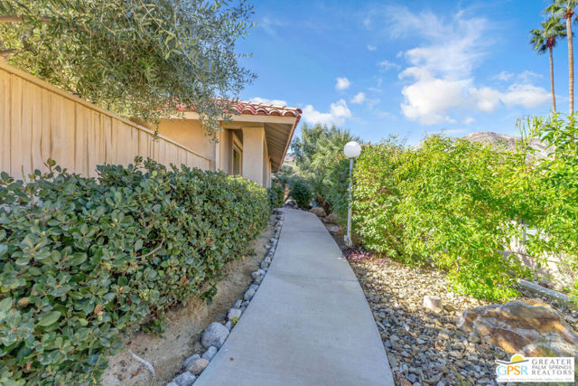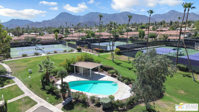Welcome to your desert retreat in Deep Canyon Tennis Courts, a gated oasis in the heart of South Palm Desert, just minutes from El Paseo. Rarely available, this true 3-bedroom, 2-bath residence is entirely single level with no stairs, a highly coveted feature within the community. Offering nearly 1,200 square feet of thoughtfully designed living space, the home is wrapped in a charming French-inspired cottage aesthetic that lends warmth and timeless appeal. The floor plan is both comfortable and efficient, enhanced by replaced windows and sliding doors that invite in natural light while improving energy efficiency. Enjoy beautiful mountain views and a very private patio, perfect for morning coffee and watching hummingbirds. Beyond the home, Deep Canyon Tennis Courts delivers a resort-style lifestyle that's hard to match. Residents enjoy multiple tennis and pickleball courts, bocce ball, a putting green, and a beautifully remodeled clubhouse hosting a variety of social activities and events. Community garden plots provide a unique opportunity to grow your own fresh fruits and vegetables. Set within a secure, gated environment, this well-loved community offers a peaceful and welcoming atmosphere just minutes from El Paseo, world-class dining, shopping, and scenic hiking trails. If you've been waiting for a single-level, three-bedroom opportunity in Deep Canyon, this is the one. Schedule your private showing and experience this rare South Palm Desert offering for yourself.