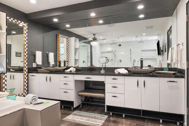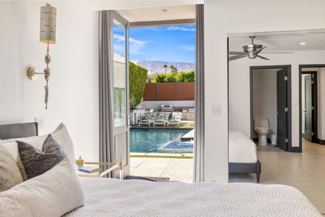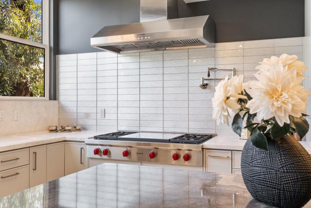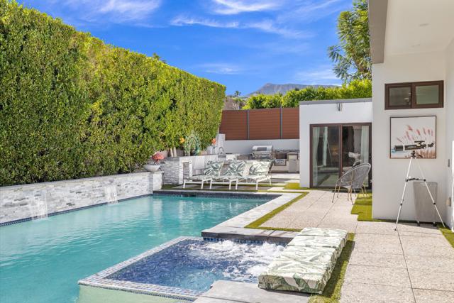 Located in sought-after South Palm Desert, just minutes from world-class golf, tennis, scenic hiking trails, and the renowned El Paseo shopping and dining district, this stunning Classic Contemporary home, totally reimagined 4 years ago, this home embodies the best of desert lifestyle living.Set on a quiet dead-end street, the property offers exceptional privacy and seamless indoor-outdoor entertaining. The open and inviting 4-bedroom, 5-bath floor plan is designed for both relaxed living and elegant gatherings.At the heart of the home is a custom chef's kitchen with breathtaking mountain views, featuring Wolf and Miele appliances, custom cabinets and finishes, a walk-in pantry, and a generous eat-in island--perfect for entertaining. The open living and dining areas offer a comfortable yet sophisticated atmosphere with a fireplace and wet bar.The luxurious primary suite is light-filled and spacious, showcasing a wall of glass overlooking the private pool and spa. The spa-inspired bath includes a dual shower, soaking tub, and a custom walk-in closet, delivering a true retreat experience.On the opposite side of the home, two elegant junior suites provide direct patio access, while a separate guest house with a full kitchen offers ideal accommodations for visitors.Designed for entertaining, the outdoor living space features a resort-style pool and spa, an outdoor kitchen, a putting green, and RV hookups--perfect for your own or guests' Airstream or RV.Designer Furnishings Negotiable!Low-maintenance landscaping makes this home especially appealing for weekenders or seasonal residents, offering luxury living with ease.