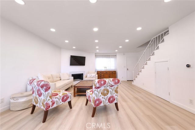 Beautiful 3-bedroom, 2½-bath townhome located in the highly sought-after gated community of Aspen Ridge at the foothills of Sun Valley. This stunning residence offers over 1,400 square feet of living space, featuring a cozy fireplace in the living room and an updated kitchen with quartz counter top and a custom backsplash with white shaker cabinets. Updates dual pane windows and Sliding doors off the dining area lead to an expansive patio with lovely views, perfect for relaxing or entertaining. Recently installed new HVAC Unit Upstairs, the oversized primary suite includes an en-suite bathroom with a walk-in shower, while two generously sized guest bedrooms share a full hallway bath. Additional highlights include recessed lighting on the main level, in-unit laundry, side-by-side parking in a subterranean garage, and access to a community pool. Conveniently located near shopping, dining, and transportation.