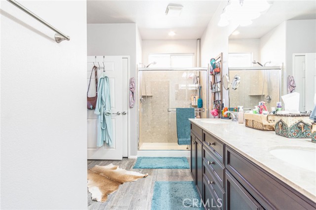Do you want to live in a beautiful 55+ community in desirable Apple Valley? Come check out this beautiful home located on the Mojave riverbed with a beautiful view of the San Gabriel mountains. A large courtyard welcome you to a lovely place to set and enjoy. Then enter to find a home that has 2 bedrooms, 2 bathrooms, a den with double glass doors and a wonderful kitchen with a breakfast nook, large pantry, stainless steel appliances, pull out shelves and granite counters. The open great room has a fireplace and dining area which is open to the kitchen. There are two solar tubes, one in the kitchen and one in the laundry room. Home is appointed with plantation shutters, crown moulding and ceiling fans. Beautiful tile floors that look like would planks were installed in 2018 along with upgraded carpet in the bedrooms and was fully painted inside at that time. The primary bathroom has dual sinks, walk-in shower, linen closet, water closet and large walk-in closet. Primary bedroom has that beautiful view to wakeup to. Step out back to a covered patio to take in the view. Home was completely painted outside, stucco and trim 4 years ago. Call and make your appointment.