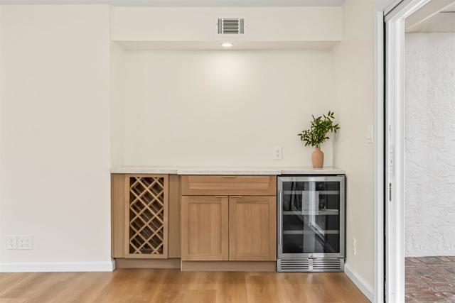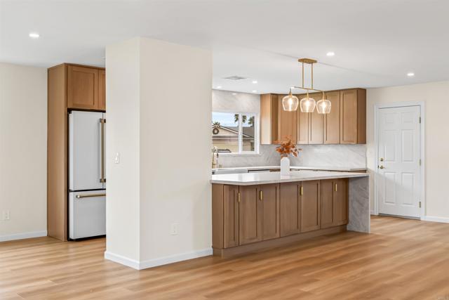 Fully updated and thoughtfully redesigned, this stunning home was initially renovated for a family member with quality, comfort, and craftsmanship at the forefront, and professionally designed by House of Wahls to deliver a truly elevated living experience. Located in a highly sought-after neighborhood, every detail has been carefully curated with high-end finishes and timeless style throughout. The bright and airy great room concept creates seamless flow for everyday living and entertaining, anchored by an impressive chef’s kitchen featuring a large center island, elegant Taj Mahal counters, custom cabinetry, and premium Café Series appliances. The spacious family room offers the perfect gathering space with a cozy fireplace and a built-in wine rack for added style and function. Generously sized bedrooms provide comfort and flexibility, while both bathrooms have been beautifully updated with designer tile finishes in the baths and showers. Throughout the home, you’ll find new dual-pane vinyl windows, recessed lighting, luxury vinyl flooring, fresh interior and exterior paint, and updated interior electrical for modern peace of mind. Step outside to your private backyard retreat complete with a covered patio, built-in charcoal BBQ, lush landscaping, and an automatic sprinkler system—ideal for relaxing or hosting guests. Located in a walkable neighborhood just moments from parks, shopping, and restaurants, this turnkey home truly offers the perfect blend of luxury, comfort, and lifestyle.