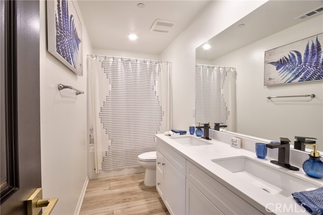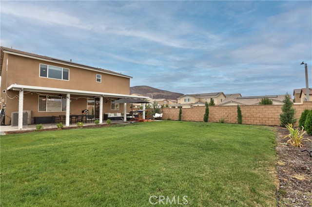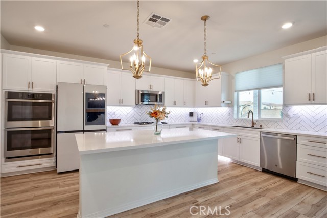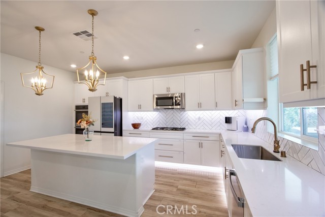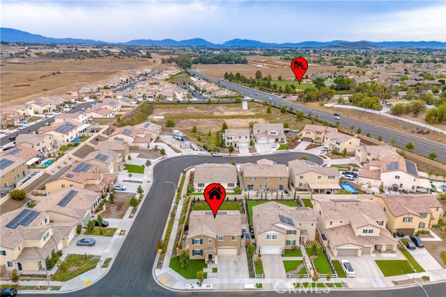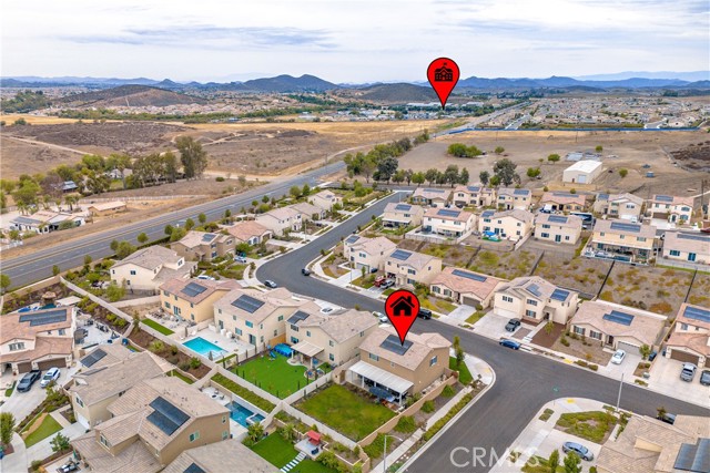 Turnkey 4-Bedroom Home with Designer Upgrades in Temecula – PAID FOR SOLAR, Built in 2022. Welcome to this move-in ready home located in Winchester and is located in the highly desirable Temecula school district. Built in 2022, this spacious 4-bedroom, 3-bathroom home offers 2,590 sq ft of modern living space on a large pool-sized corner lot with ample guest parking. Step inside to find a custom designer accent wall with stylish light sconces. The open floor plan features a downstairs bedroom and full bath—perfect for multi-generational living or guests. The gourmet kitchen is a chef’s dream, featuring a large center island with seating, herringbone backsplash, walk-in pantry, plenty of cabinets for storage, gold hardware and faucet, and designer pendant lighting. The kitchen flows seamlessly into the great room, which includes a cozy gas fireplace with floating shelves and wood mantel, and a large sliding glass door that opens to the spacious backyard—ideal for indoor-outdoor living and entertaining. Upstairs, enjoy a large loft/family room, upstairs laundry room with storage, two secondary bedrooms, and a full bathroom with dual sinks and tub/shower combo. The luxurious primary suite includes a generous bedroom, double sink vanity, walk-in shower, and an oversized walk-in closet. The backyard is perfect for entertaining, with a large covered patio, fruit trees, block wall fencing, and plenty of space for a custom pool or garden. Additional Features: include Energy-efficient construction and home is fire sprinkler, Luxury vinyl plank flooring, Recessed lighting and NO HOA, Located close to shopping, parking dining, and Temecula’s world-famous wineries.