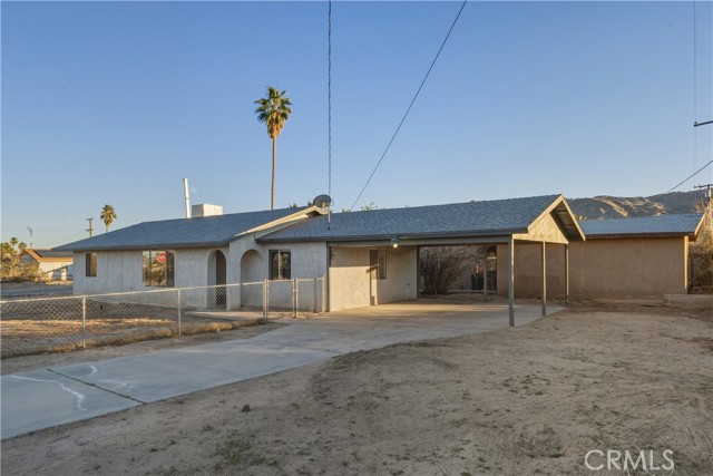 Presenting 6206 Abronia Avenue! A clean, affordable single family home located in the Chocolate Drop neighborhood of 29 Palms. This would make for a great starter home, investment rental or other. Featuring an open floor plan with exhibition kitchen, two good sized bedrooms, one full bathroom and an additional family area that can be used as more living space or a den or home office. The home has a refreshed kitchen with new laminate counter tops, a new 33" stainless steel sink, new garbage disposal, new oven range hood and cabinet knobs. The interior of the home is also freshly painted and a new toilet installed in the bathroom. Sitting on a corner lot with a nice large fenced front yard. This home is close to all the high desert and surrounds has to offer. Only just over 10 minutes to the main entrance of Joshua Tree National Park, less than 15 minutes to the 29 Palms Marine base, a very short drive to downtown 29 Palms and it's great restaurants, shops, farmers market and events.