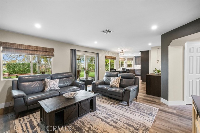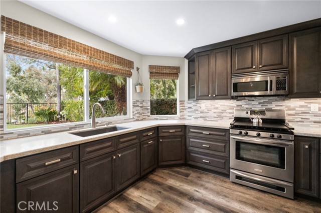 Welcome to this stunningly reimagined residence on a quiet cul-de-sac in the coveted Robinson Ranch community. This 4-bedroom, 3 full bathrooms, 3 car garage home seamlessly blends modern luxury with comfort, featuring LVP flooring on both levels. The heart of the home is a remodeled kitchen boasting custom coffee center, pull-outs, stainless steel appliances, and a farmhouse sink. The versatile main-level bedroom (no closet) is ideal for a home office, situated adjacent to a full bathroom. Step outside to a spacious backyard to enjoy expansive, unobstructed views, the perfect backdrop for entertaining or quiet evenings and beautiful sunsets. Nestled at the base of the Saddleback Mountains, enjoy the world-class amenities of Robinson Ranch, including award-winning Robinson Elementary. Close to the community pool, tennis courts, pickleball courts, tot lot, and miles of hiking trails. Near Airports, Beaches, RSM Lake, Local Dining, O’Neill Regional Park and Tijeras Creek Golf Course. This is the turnkey opportunity you've been waiting for and to top it off there is NO MELLO ROOS!