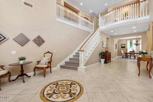 Welcome to this stunning and beautiful estate located in the highly sought-after 'Big Sky' community of Central Simi Valley. Built by Shea Homes in 2006, this expansive two-story residence offers approximately 3,973 sq. ft. of luxurious living space on an 8,317 sq. ft. lot. Boasting 5 bedrooms and 4.5 bathrooms, including a convenient main-floor bedroom with a full bathroom, this home combines elegance, comfort, and functionality.Step inside to find soaring cathedral-vaulted ceilings, an open and airy floor plan, a seamless flow between the formal living room, dining room, and separate family room featuring dual fireplaces and a media niche. Upgraded tile, marble, and recessed lighting, double-pane windows, and stylish window coverings throughout. The gourmet chef's kitchen features a large center island with granite countertops and backsplash, top-of-the-line stainless steel appliances, a built-in GE Monogram refrigerator, double ovens, and a built-in gas range. And a large bonus room can be used as an additional bedroom or office downstairs.Upstairs, the luxurious primary suite includes a spacious walk-in closet and a private office/sitting area. One of the upper-level bedrooms opens up to a balcony. Enjoy resort-style outdoor living in the professionally landscaped backyard, complete with a covered patio, built-in BBQ, cozy outdoor fireplace, tranquil waterfalls, a basketball court, and ample space to entertain. EV chargers and an extra big storage room in the garage. This meticulous home is a true gem--an absolute must-see!! Please visit WWW.4053EAGLEFLIGHTDRIVE.COM