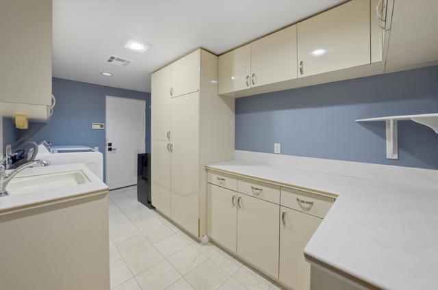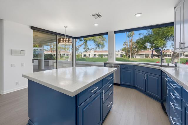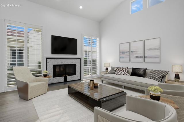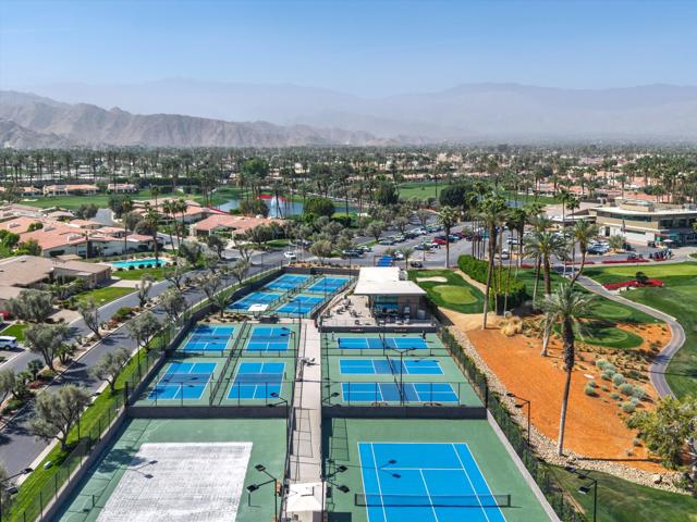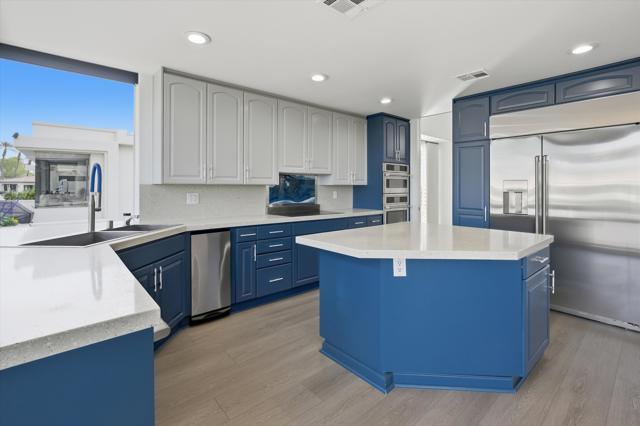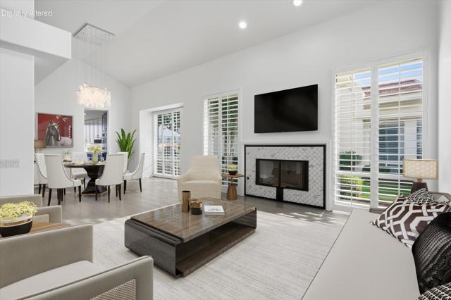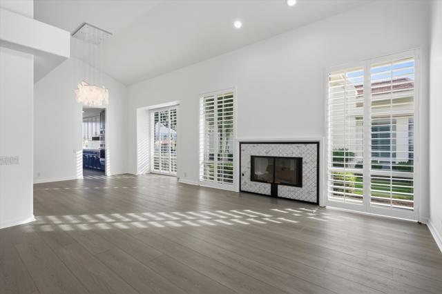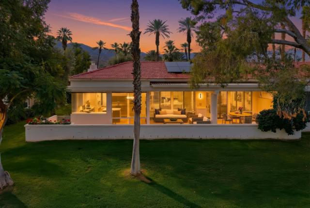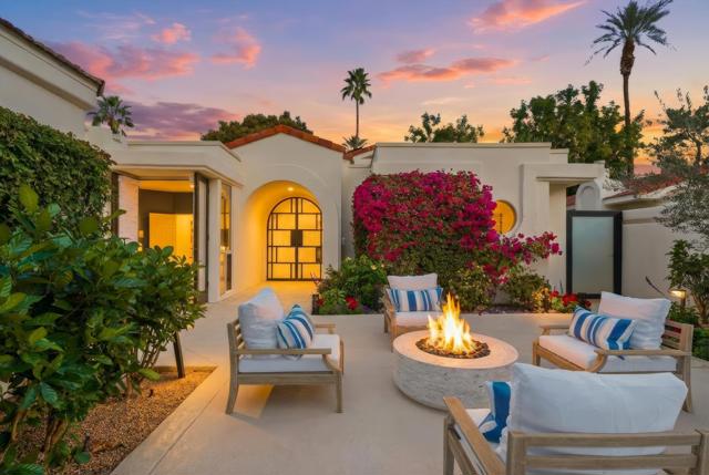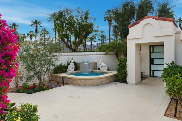 Open floorplan w attached Casita on the 18th hole in the prestigious Desert Horizons Country Club, Indian Wells. This home welcomes you with a custom glass gate and a private courtyard featuring a spa. Inside, double arched glass doors open to a bright, open-concept living area with vaulted ceilings, a fireplace, and formal dining. The spacious kitchen with island and breakfast nook flows seamlessly to a large, covered patio--perfect for entertaining w space and great views.Offering over 2,700 sq. ft., this residence includes three generous bedroom suites (one currently an office), a powder room, and an oversized laundry room for extra storage. Upgrades include an owned solar system, new AC and pool equipment, tankless water heater, stainless appliances, custom wet bar, automatic window blinds, and an air-conditioned two-car garage with golf cart space.HOA amenities: clubhouse with fitness, spa, and wellness centers; tennis, pickleball, and bocce courts; 24/7 security; alarm monitoring; fire and hazard insurance; exterior maintenance; landscaping; pest control; and access to 20 pools, spas, lakes, and an 18-hole putting course.