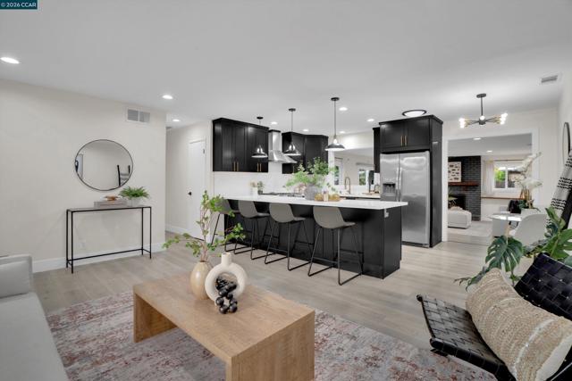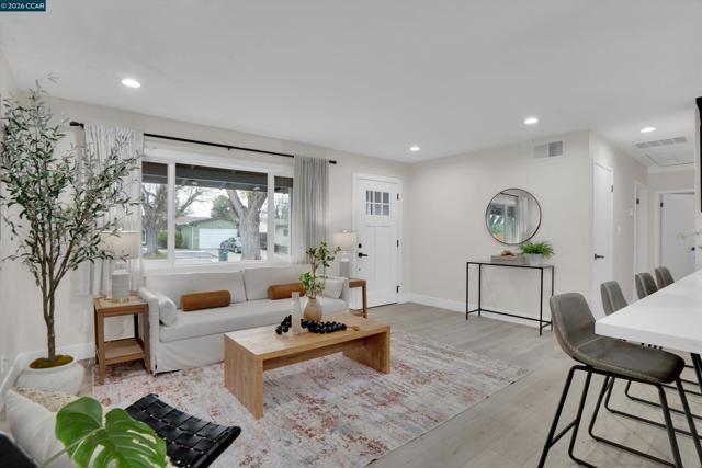 Welcome to 1290 Cypress Drive, a beautifully updated single level home in the heart of Concord, where charm, comfort, + functionality come together with ease. Featuring 4 bedrooms + 2 full baths, and a versatile bonus space—ideal for a home office, gym, storage, or possible ADU conversion into an income-producing unit. The kitchen is the standout room of the house, complete with an oversized island peninsula, white quartz countertops, + sleek luxury cabinetry. Bar-top seating + an eat-in kitchen make it perfect for both casual mornings + hosting. Durable LVP flooring flows throughout an open floor plan with dual living + family rooms, a formal dining area, + an inviting brick fireplace that anchors the main living space. Thoughtfully designed for everyday living + entertaining, this fully updated home offers space, flexibility, + a layout that truly works. Outside, from the charming exterior to the spacious backyard, enjoy ample space w covered pergola, patio for entertaining, open space, and a mature tangerine tree—an ideal setting for relaxing or gathering outdoors. Conveniently located just minutes from Highway 4 and I-680, Veranda + Walnut Creek Shopping, offering incredible conveniences + everyday living luxuries. OPEN HOUSE SAT + SUN 1-4PM