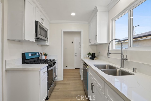 Welcome to this beautifully remodeled 3-bedroom, 2-bath home located in Los Angles, offering approximately 1,456 square feet of living space. This move-in ready property features brand new flooring, fresh interior paint, updated fixtures, and a completely remodeled kitchen that's both modern and functional. The layout flows seamlessly, creating a warm and welcoming atmosphere with plenty of natural light throughout. A two-car garage provides convenient parking and additional storage. This home has tasteful upgrades and a fresh clean feel, this home is perfect for buyers looking for comfort and charm. Don't wait, see it today!