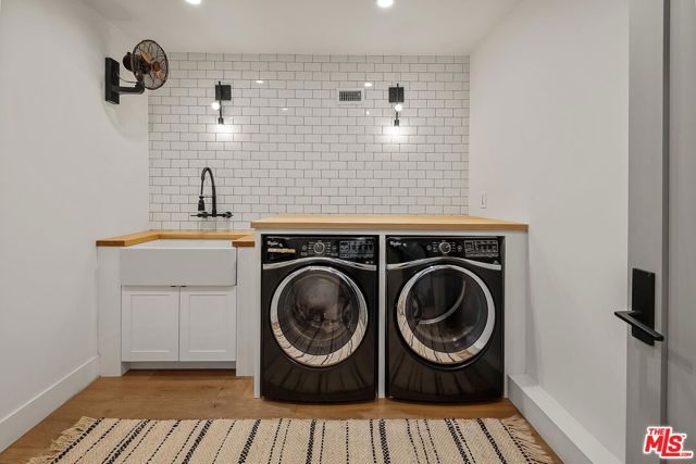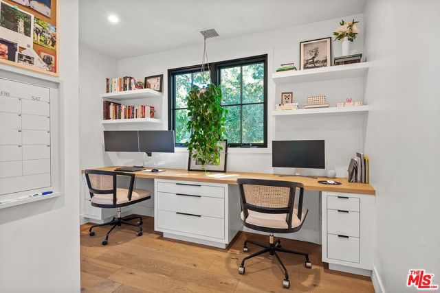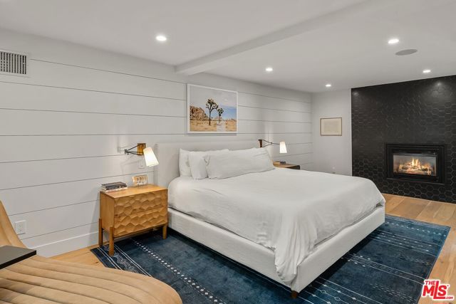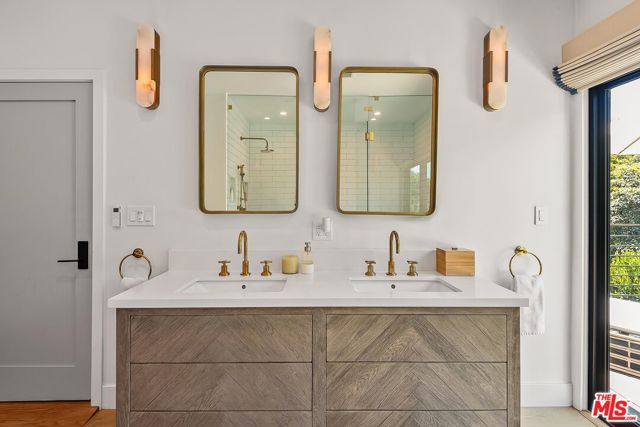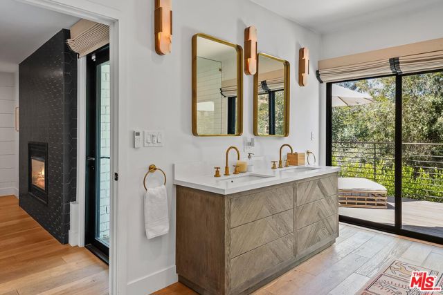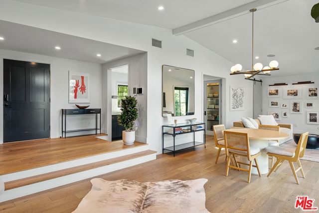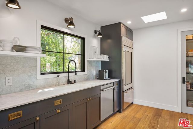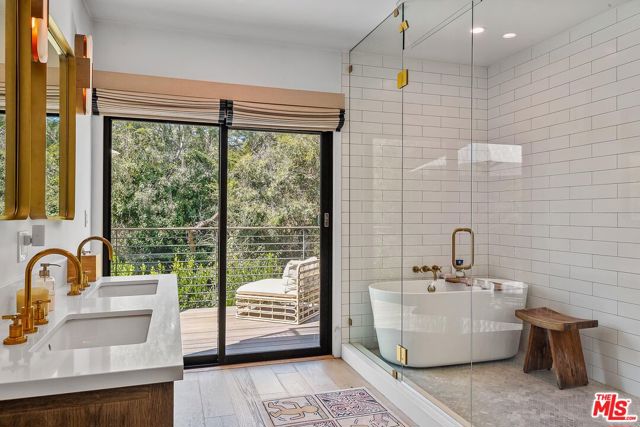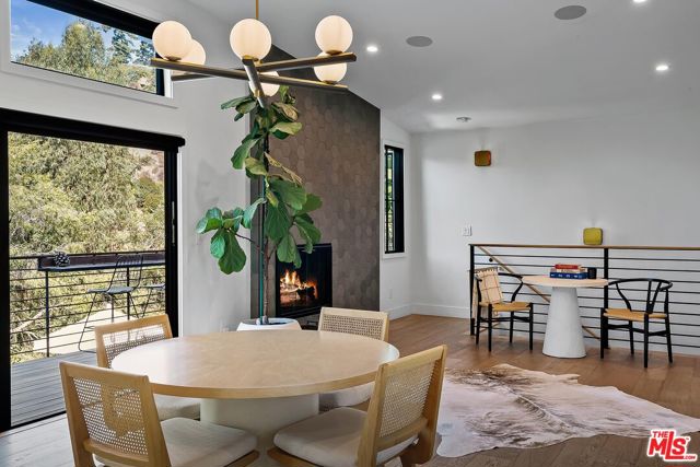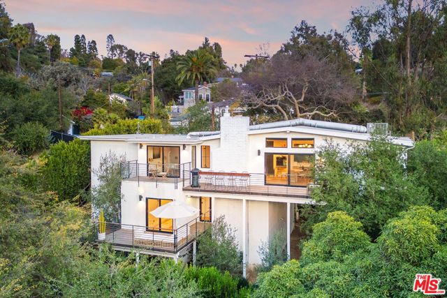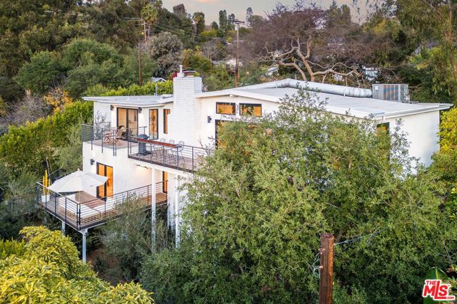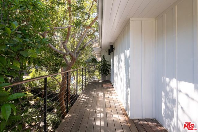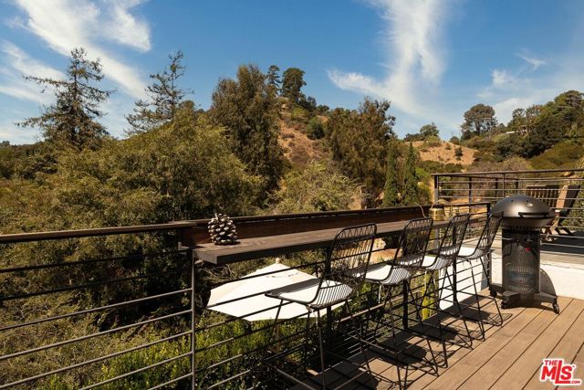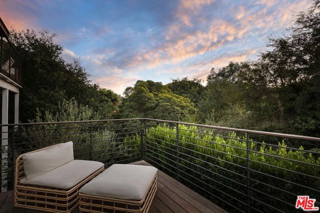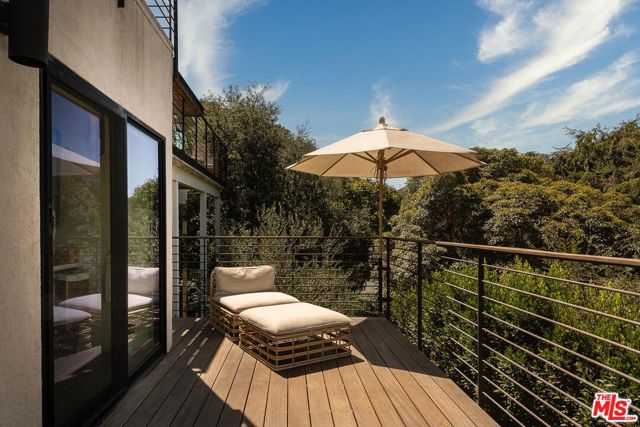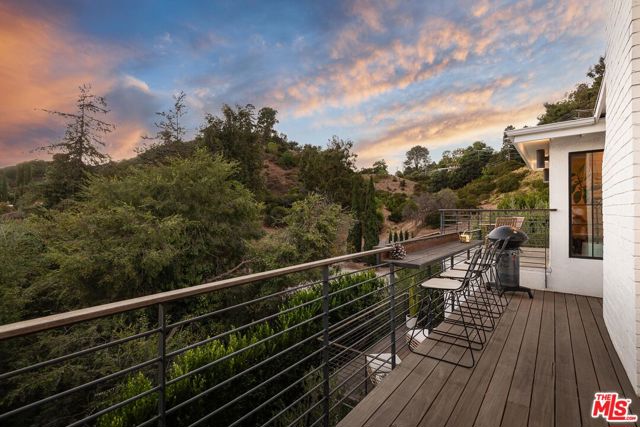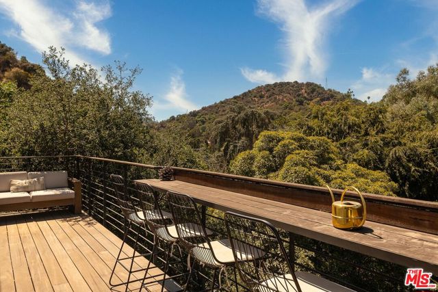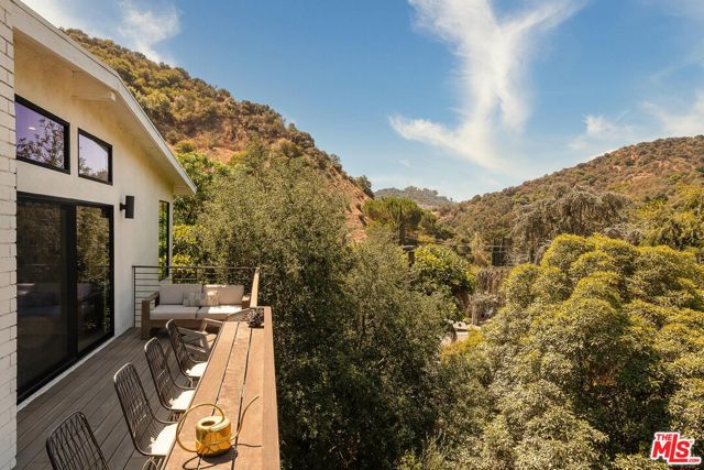 Introducing a meticulously renovated home with breathtaking canyon views, tucked away on a peaceful, tree-lined street in the hills above Laurel Canyon. This three bedroom residence features two full-size bedrooms plus a versatile third room ideal for a home office, nursery, or guest space. Step inside to an airy, open-concept layout flooded with natural light. The gourmet kitchen features premium Sub-Zero and Wolf appliances, gleaming marble countertops, and custom cabinetry. The spacious living and dining areas extend seamlessly to a private Ipe wood deck, complete with a built-in bar, ideal for outdoor dining. The primary suite offers a cozy fireplace, a private balcony with canyon views, and a luxurious spa-like bathroom featuring dual vanities and a wet room with a soaking tub and shower. The second bedroom also includes its own private balcony and a spa-inspired bathroom. Outside, the lower yard provides a lush, grassy area perfect for entertaining amidst serene landscaping. Additional amenities include built-in desks with storage, a LifeSource whole-house water filtration system, a security system with in-wall iPad control, Sonos surround sound, and more. Just minutes from the Sunset Strip and Ventura Blvd, this home epitomizes modern California living.