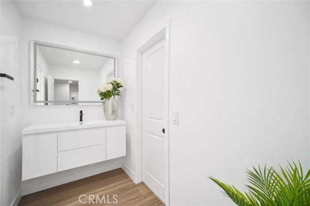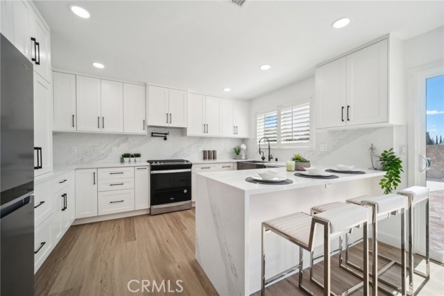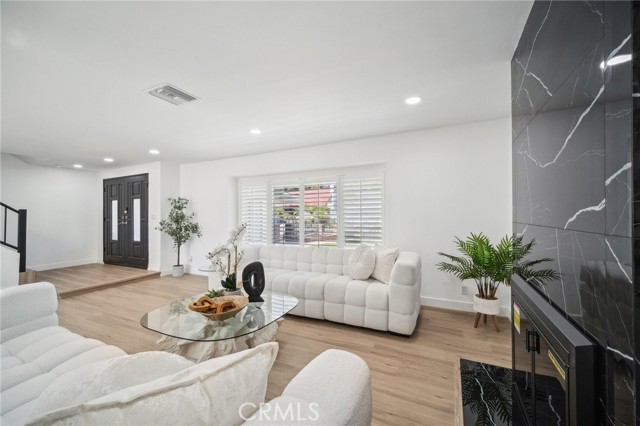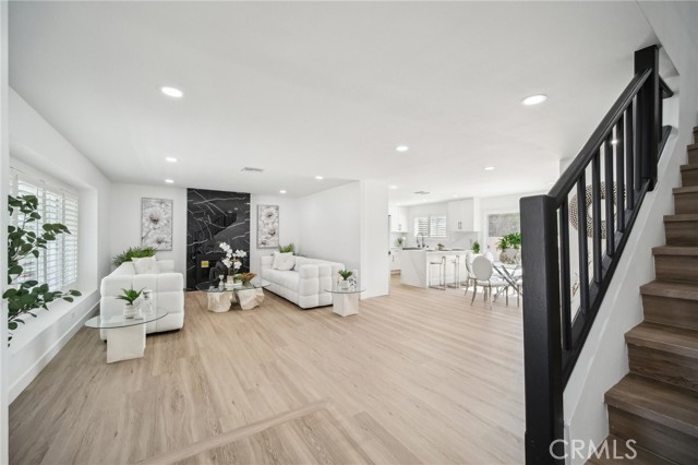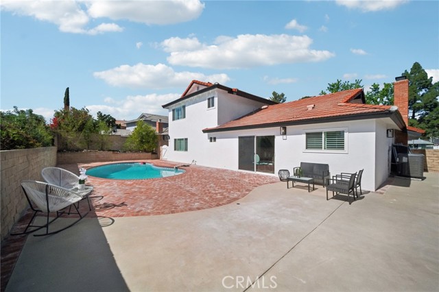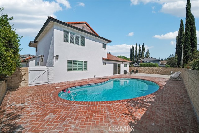 Beautifully remodeled gated home located in a highly desirable Porter Ranch neighborhood. Features include 5 bedrooms and 3.5 updated baths with over 2150 sqft of living space. Walk through the double doors and be amazed what this true beauty has to offer. Large light & bright living room with modern fireplace opens to the dining area, brand new custom kitchen with quartz counters, a pot filler and stainless steel appliances, two large bedrooms and two large bathrooms downstairs, 3 bedrooms and 1.5 baths upstairs, fully finished two car attached garage with direct access, private back yard with pool and so much more. Additional features include new dual pane windows, laminate flooring and recessed lighting throughout, new paint inside and out, updated central A/C and Heat. This is a must see home in a beautiful neighborhood with great schools and just minutes to the Vineyards in Porter Ranch.
