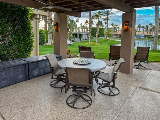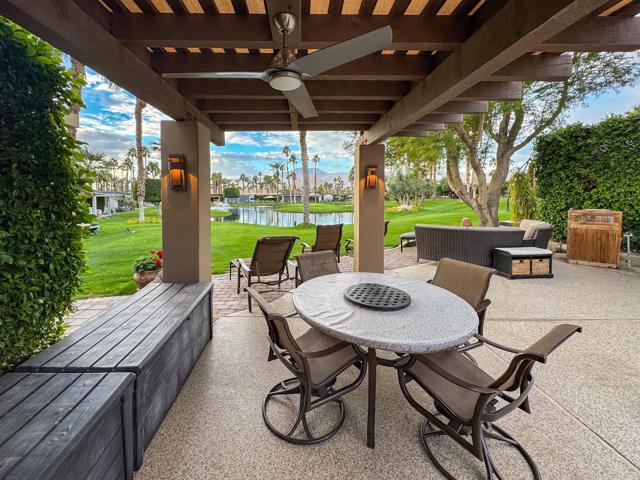 Outdoor Resort Indio is a class-A only motorcoach community. Nestled in one of the most tranquil sections of the golf course, this north-facing luxury RV lot offers stunning mountain views both front and back, with the 11th hole tee-off right at your doorstep. The long pergola, freshly repainted last year, provides ample shade, ensuring your RV, car, and golf cart stay cool throughout the day. Enjoy the breathtaking afternoon mountain sunset views while relaxing under the pergola, cooled by two fans and surrounded by private hedges that enhance the lot's seclusion. The resurfaced RV pad, extended with pavers, accommodates a 45-footer with room to spare for additional parking, while dual hookups at both ends and the middle add unparalleled convenience.The outdoor kitchen is a chef's dream, featuring a large backsplash, built-in bar, stainless steel cabinets, a dishwasher, a small refrigerator, and a built-in BBQ. Landscaped for beauty and privacy, this well-maintained lot is fully furnished with high-end Tropitone furniture for a touch of elegance. With no stray golf balls to worry about, this premium property is also a fantastic income generator, commanding top-tier rental fees. Offering cool comfort, stunning vistas, and unmatched privacy, this unique lot is a rare find in a serene and desirable location.