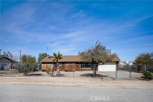 This 2-bedroom, 2-bath Joshua Tree home sits on a generous 19,320 square foot lot with room to breathe, create, and enjoy the desert landscape. The living room features a fireplace that anchors the space and adds warmth and character, while large windows bring in natural light throughout the day. The kitchen retains a functional layout with ample cabinetry and a pass-through opening to the living area, creating easy flow for everyday living or casual entertaining. Both bedrooms are well-proportioned, and the bathrooms offer vintage charm with potential for future updates. A huge attached garage provides excellent storage, workspace, or flexibility for hobbies, gear, or studio use. Outside, the expansive yard includes mature desert trees, a carport, and additional storage, with plenty of space to shape the property to your vision. Conveniently located near Joshua Tree National Park, local shops, galleries, and community events, this property offers a solid foothold in one of the High Desert’s most sought-after areas—ideal as a full-time residence, weekend escape, or creative retreat.