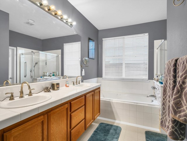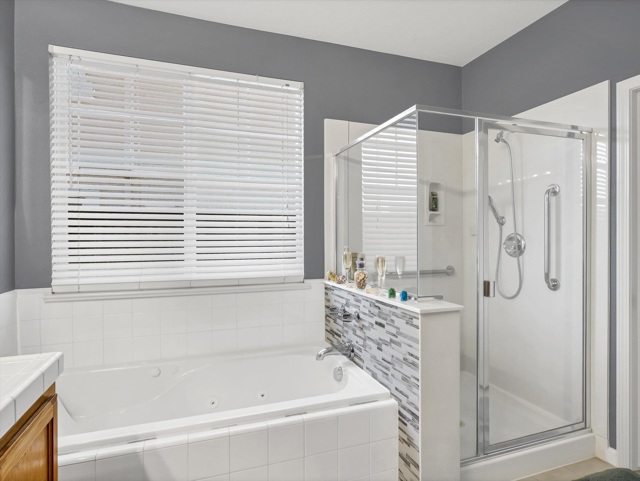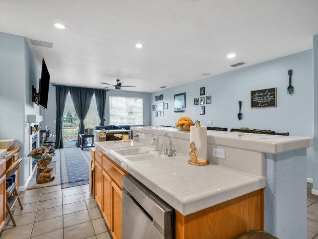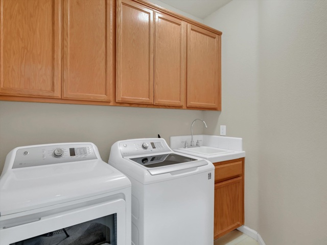Resort-style living in the Prestigious & Secluded Diablo Grande community! This vibrant, light-filled single-level home offers nearly 2,000 sq ft on a 5,000+ sq ft lot with NO Rear Neighbors, Extended Driveaway for ample parking, Leaf Filter Gutter Guards, New Water Heater, and NO STEP Entry! Interior highlights include calming paint tones, warm color schemes, vaulted ceilings, cozy carpet and tile flooring, oak cabinetry, abundant natural light, Laundry Room with cabinets, Utility Sink, and a whole-house water softener. The spacious kitchen features expansive counters, built-in workstation, a large island with sink and a filtered drinking water system, seamlessly opening to the inviting living room with a gas fireplace. The low-maintenance backyard is peaceful, placid, and includes a Generac generator for uninterrupted power during outages!!! The generous primary suite offers direct yard access, dual-vanity sinks, bath suite with grab bars, and a deep-soak jetted tub. Community amenities include front-yard landscape maintenance, clubhouse, golf course, walking trails, parks and MORE!! A clean, comfortable, beautifully maintained home ready to enjoy.
