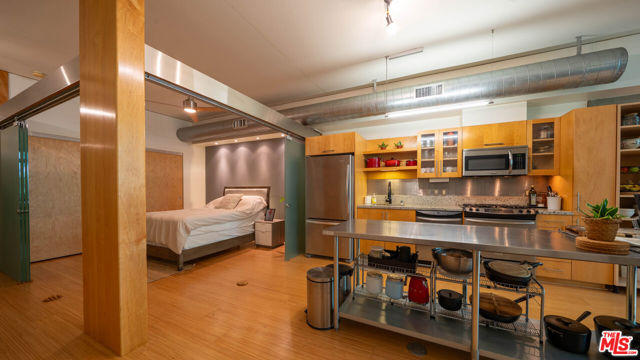 Well below tax assessor's value and previous purchase price. Seize the opportunity before someone else does. Experience urban sophistication in this stunning 1,100 sq ft soft-loft residence at the LEED-Certified "Elleven" Building in Southpark, super low electric bill ($25/m). This spacious west-facing home showcases over $45,000 in designer upgrades, including beautiful bamboo flooring, custom six-foot smoked-glass sliding panels with a sleek stainless-steel header and solid-wood framing providing an elegant sense of bedroom privacy while maintaining an open, airy flow. Also included is a dedicated EV charger ($3500 value). The wall-to-wall windows fill the space with natural light and offer tranquil treetop views accompanied by the soothing sounds of the community's water feature below. The modern kitchen features stainless-steel appliances, granite countertops, and a stainless mosaic backsplash, perfect for both cooking and entertaining. Additional highlights include recessed lighting, a large laundry room with built-in storage, a custom closet organizer, and one assigned parking space conveniently located next to a private storage room, a rare and valuable amenity in DTLA living. Located in the vibrant South Park District, you're just steps away from LA Live, Crypto.com Arena (formerly Staples Center), Microsoft Theater, Ralphs, FIDM, and countless acclaimed restaurants, cafes, and lounges.