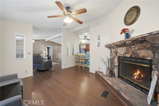 Welcome to the vibrant 55+ Sharondale community! This well-maintained single-level home offers 1,780 sq. ft. of comfortable living space with newer laminate flooring throughout and an updated kitchen with modern countertops. The open floor plan is perfect for everyday living and entertaining, featuring a cozy den with a fireplace. The spacious primary bedroom is conveniently located off the dining area, while two additional bedrooms are situated on the opposite side of the home, providing privacy for guests or hobbies. All bedrooms include ceiling fans. An indoor laundry room is located just off the kitchen for added convenience. Parking is a breeze with a two-car garage adjacent to the carport. Residents enjoy access to community amenities including an association pool, clubhouse, and more. This home offers comfort, convenience, and an active lifestyle in a welcoming 55+ community.